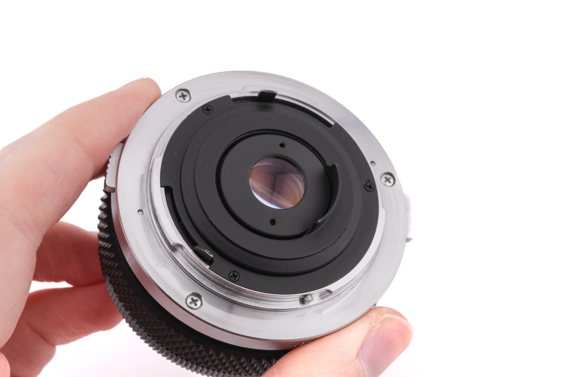 Manual focus wide-angle lens made for OM mount SLRs by Olympus. One of the first lenses introduced alongside the OM-1 in 1972. Metal body available in black & silver.