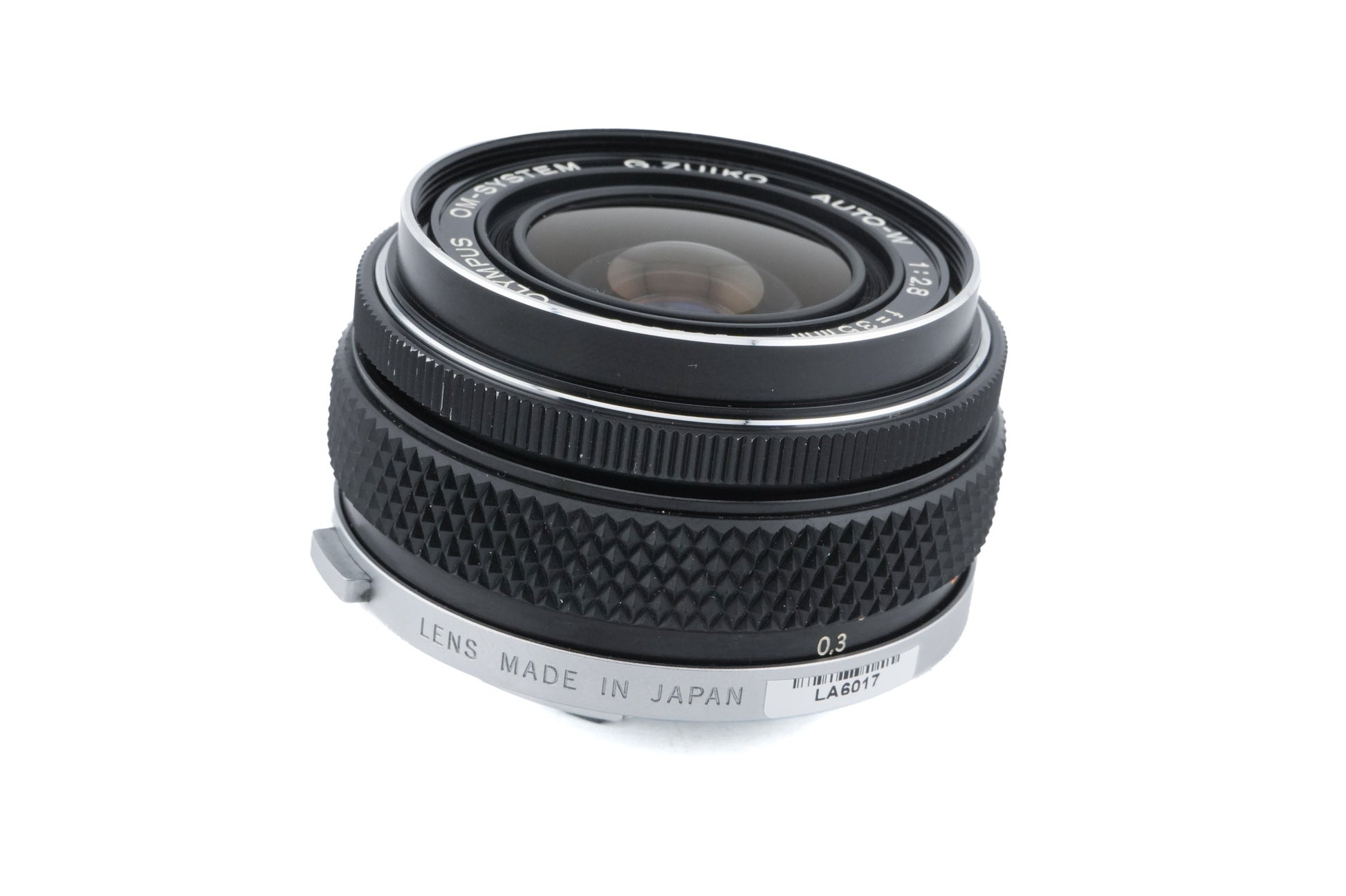 Manual focus wide-normal lens made for OM-mount 35mm SLR cameras introduced by Olympus. Metal body available in silver & black.