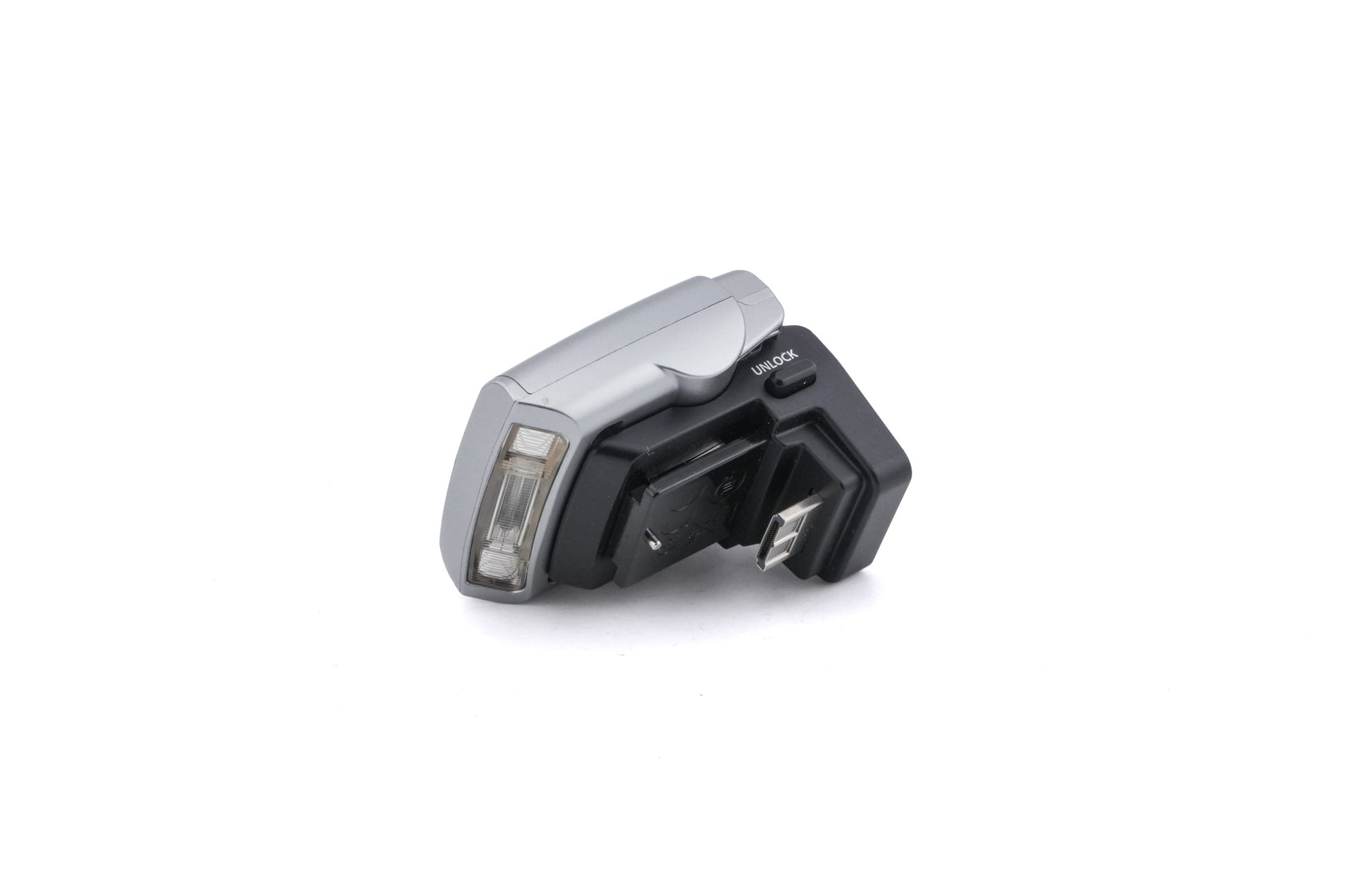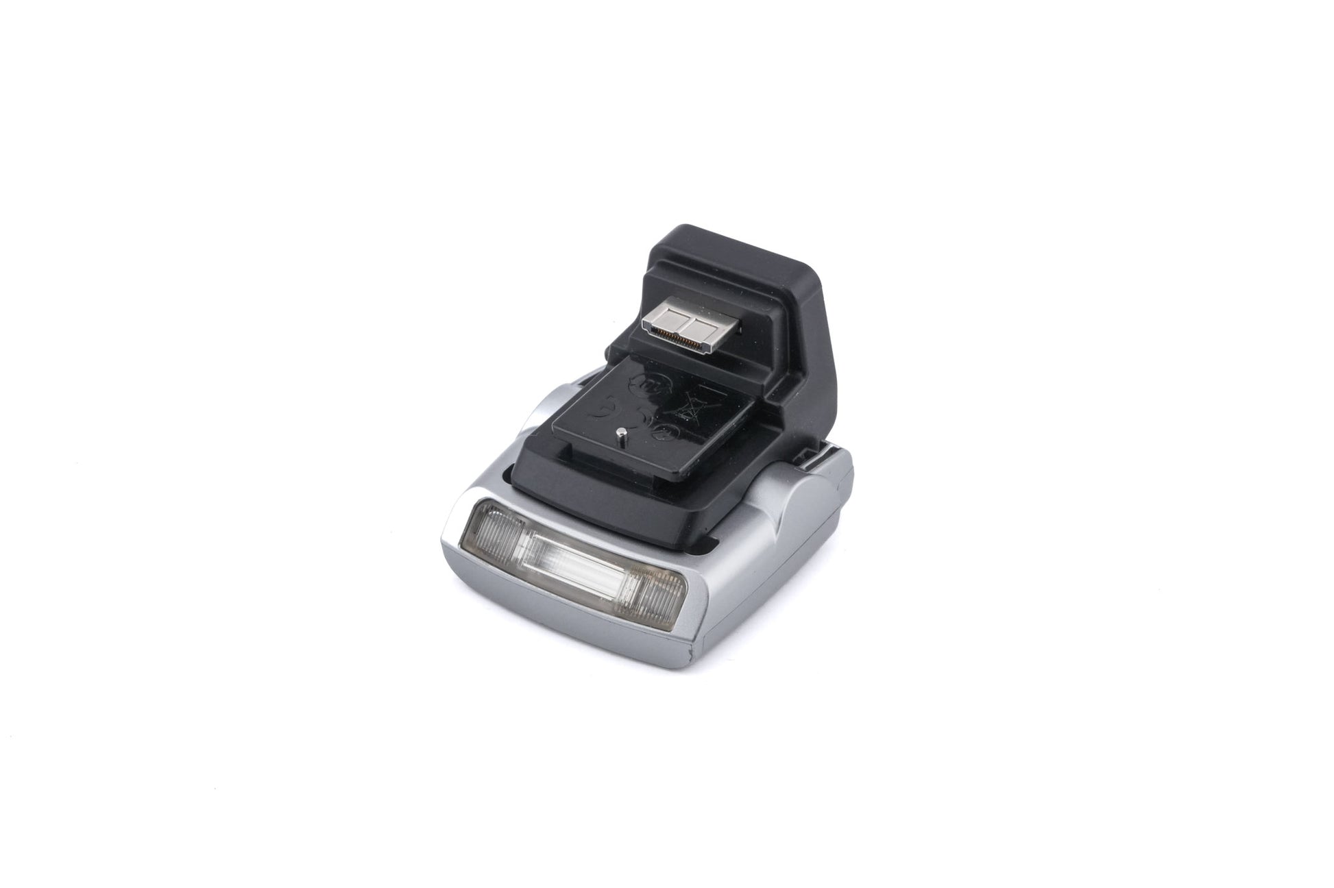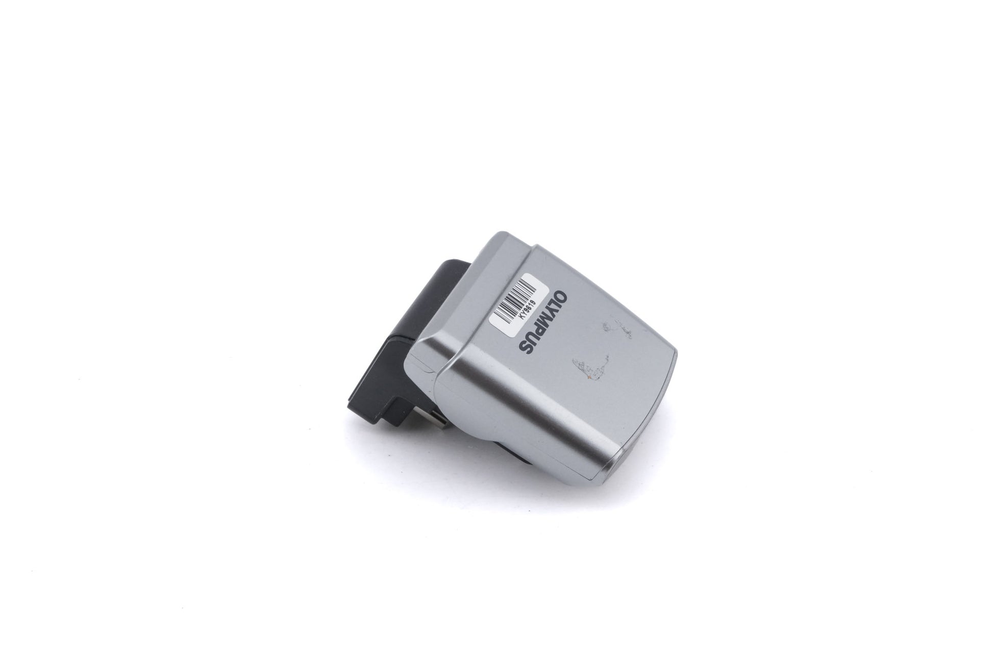 Small-sized flash unit made by Olympus. Plastic body available in silver.