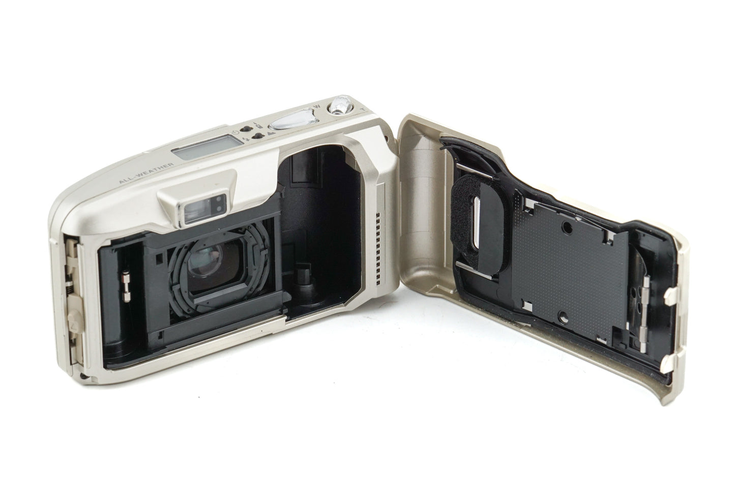 Autofocus 35mm point-and-shoot camera released by Olympus in 2004. This was the final film camera sold under the Mju name. It is also known as the Olympus Stylus Epic 80 DLX (NA). Plastic body available in champagne.