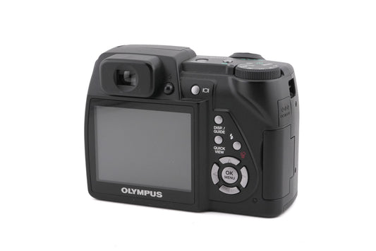 Autofocus compact bridge camera introduced made by Olympus. Metal and plastic body available in grey.