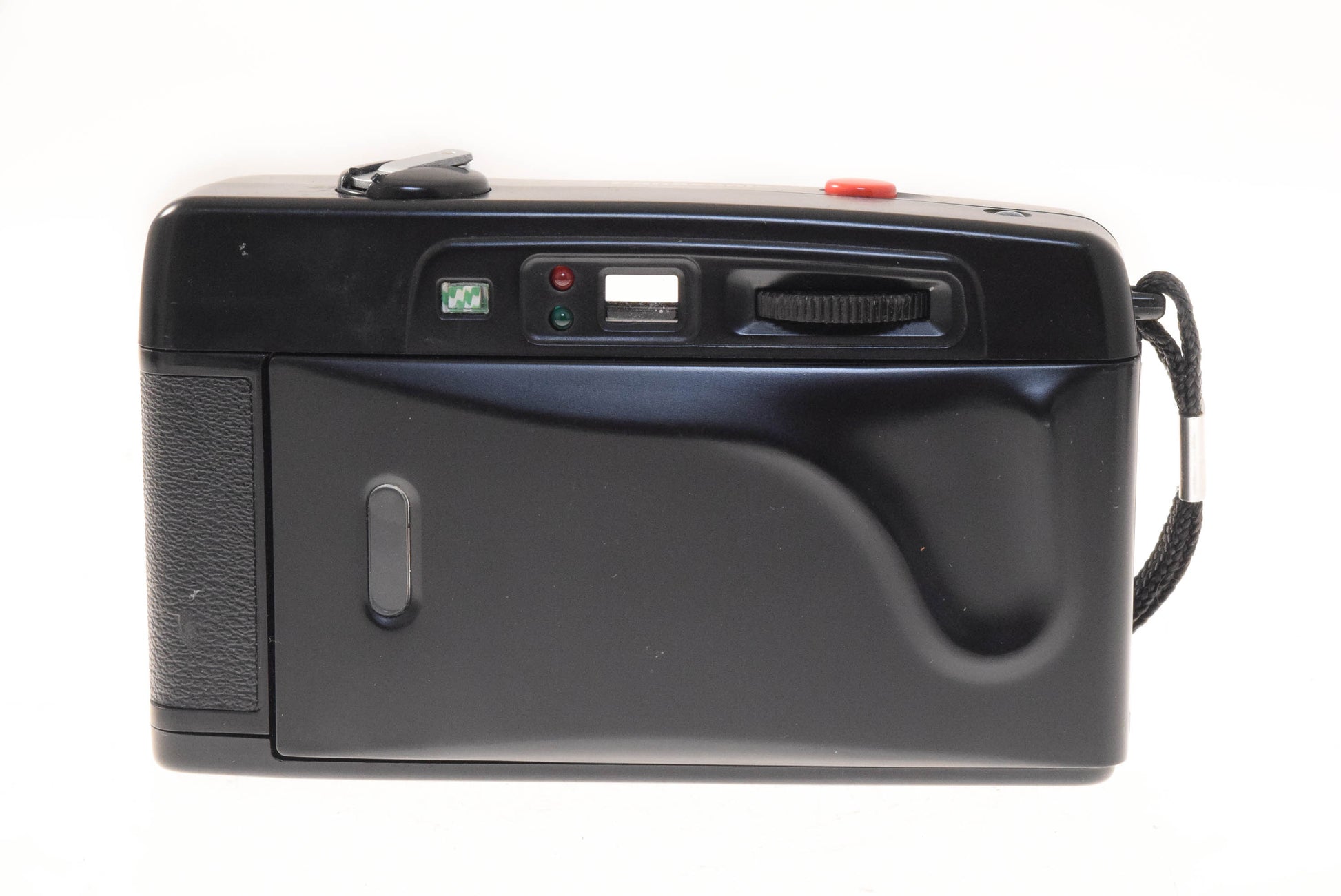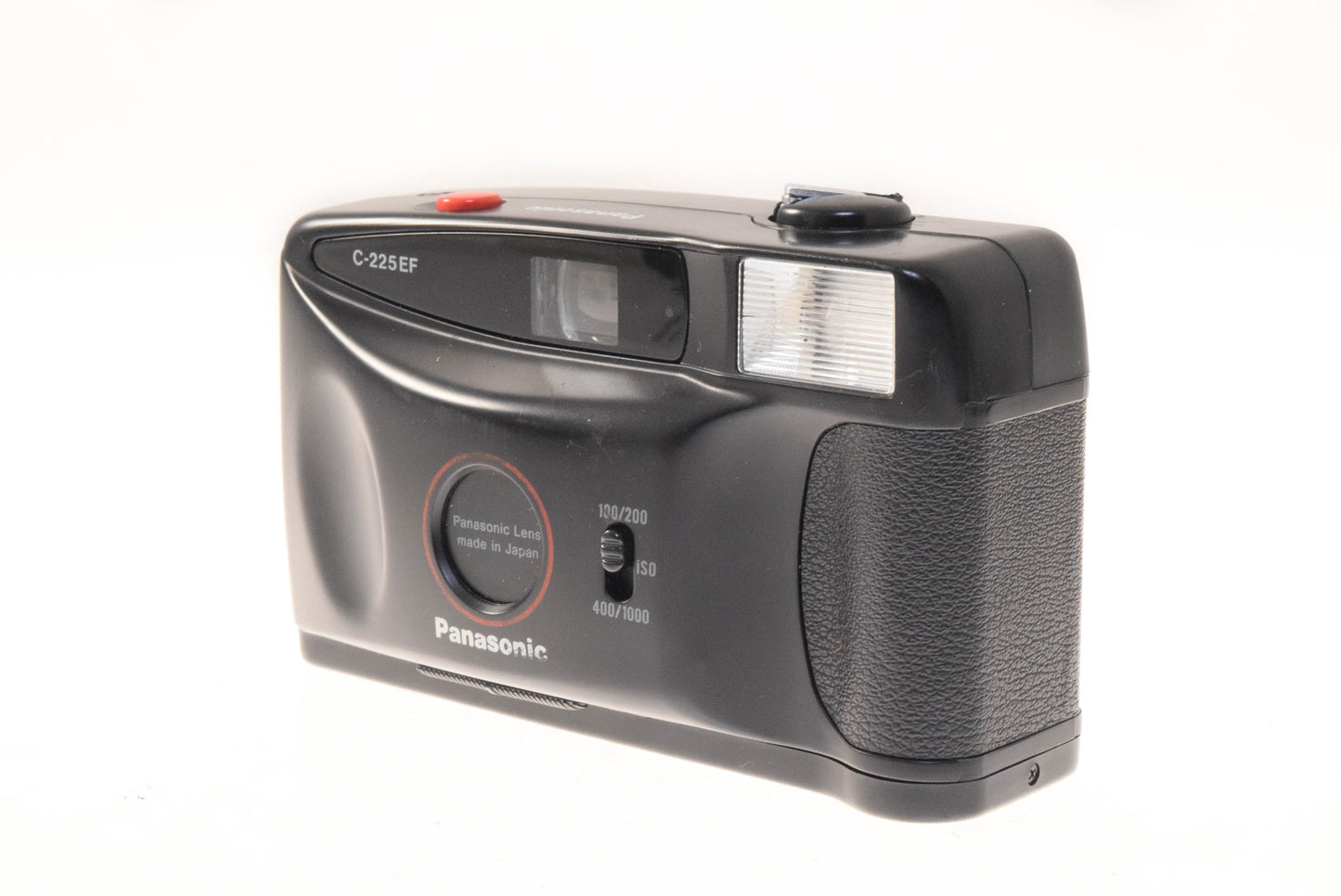Fixed focus 35mm point-and-shoot camera released by Panasonic. Plastic body available in black or red.