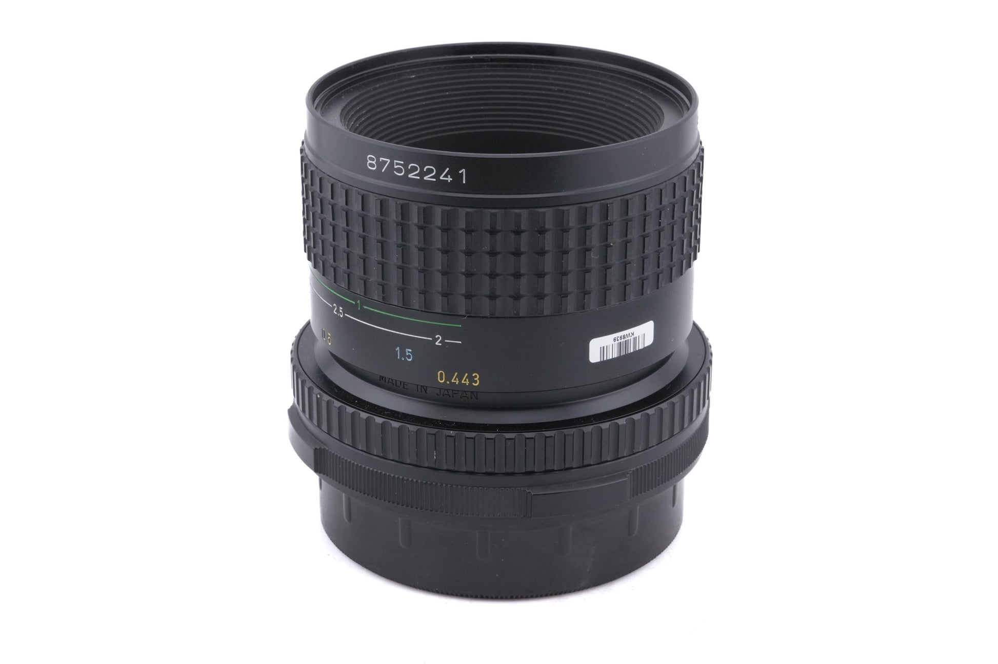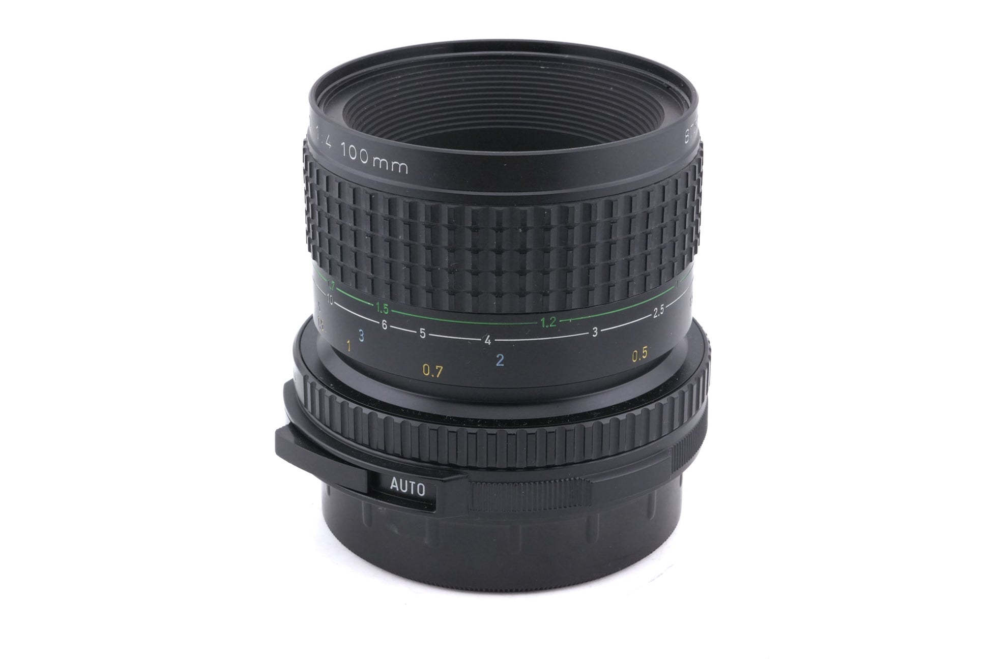 Manual focus normal macro lens made for 6x7 mount 120 SLRs by Pentax. It is capable of 1:2 macro reproduction that can be upgraded to 1:1 with the optional Life-Size Converter. Metal body available in black.
