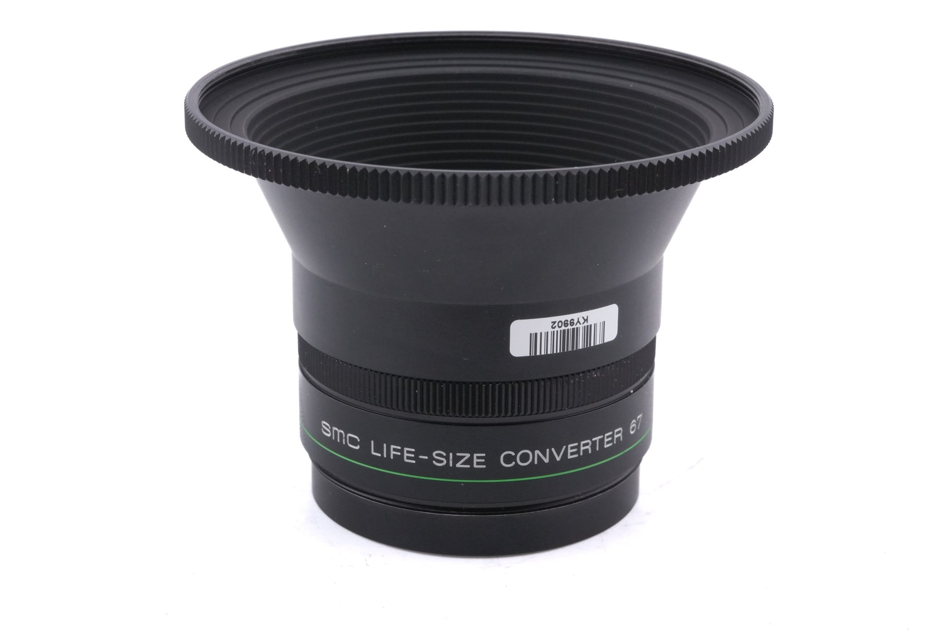 Converter made for the 100mm f4 macro lens by Pentax. It allows the lens to go from 1:2 to 1:1 macro reproduction. Metal body available in black.