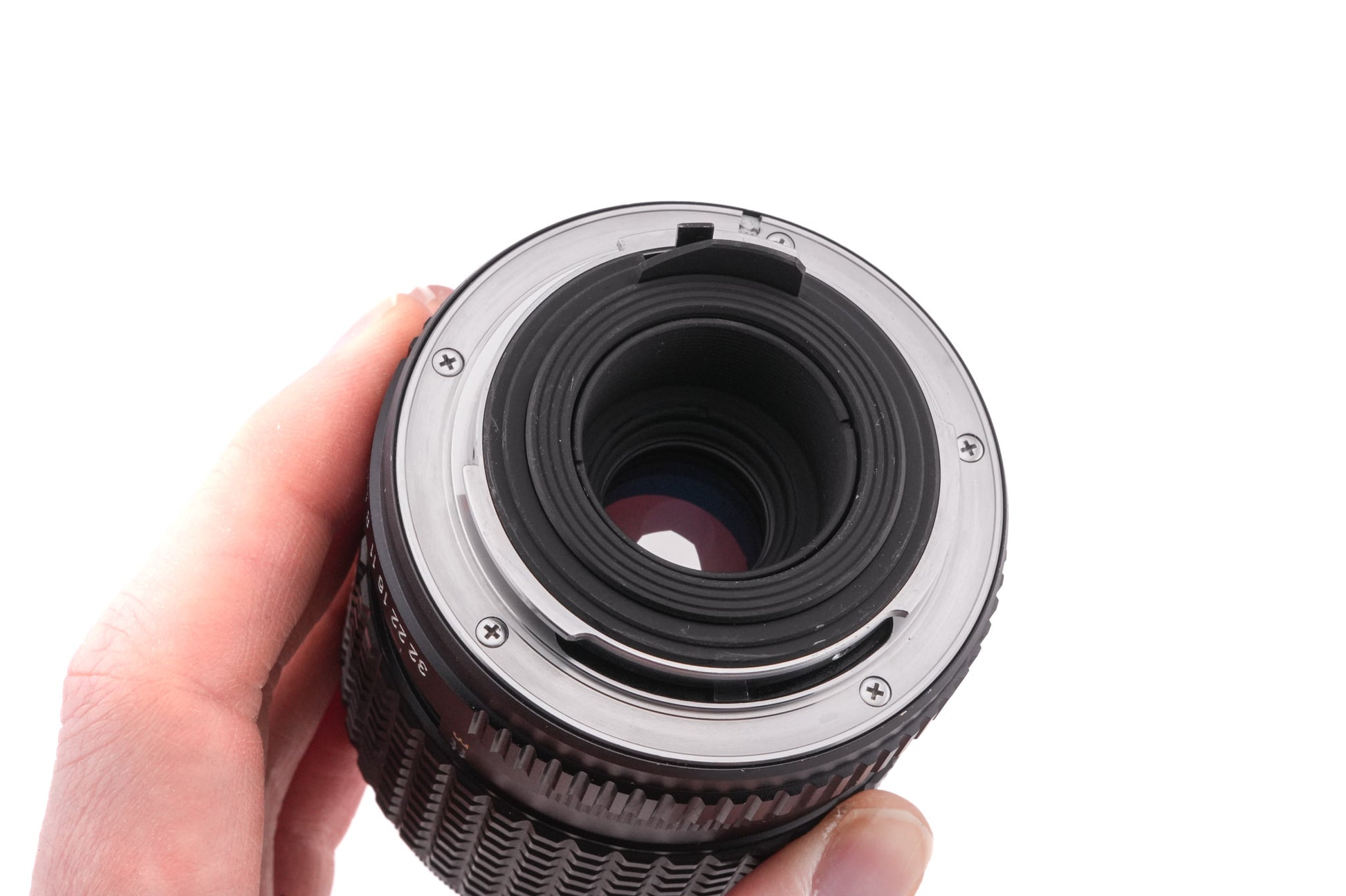 Manual focus telephoto lens made for K-mount 35mm SLR cameras by Pentax. This is the second version of this lens for K-mount and is slightly lighter than its predecessor. It has a built-in lens hood. Metal body available in black.