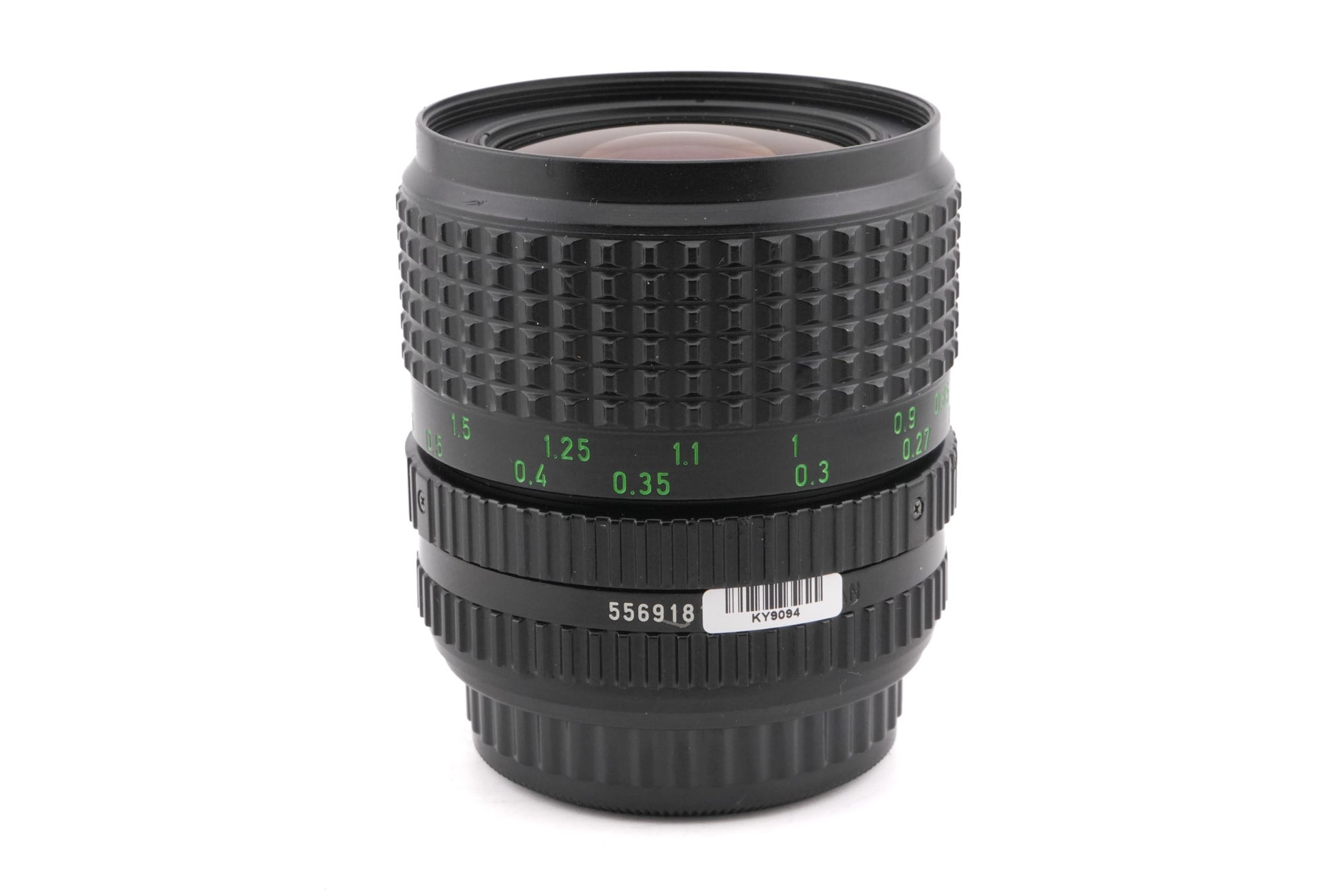 Manual focus zoom lens made for Pentax K-mount 35mm SLR cameras by Pentax. Metal body available in black.