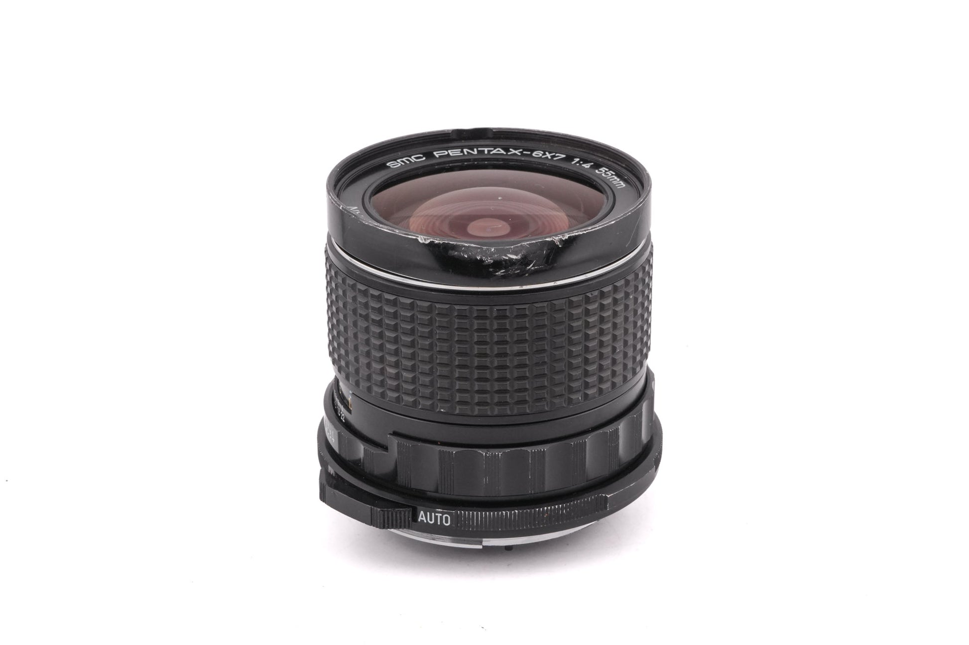 Manual focus wide-angle lens made the 6x7 system introduced by Pentax. It has a 28mm equivalent focal length. Metal and plastic body available in black.