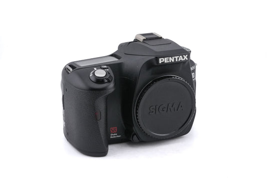 Autofocus APS-C K-mount DLSR camera made by Pentax introduced in 2007. Has sensor-shift image stabilization, a pop-up flash, and a 2.5″ rear LCD screen. Plastic body available in black.