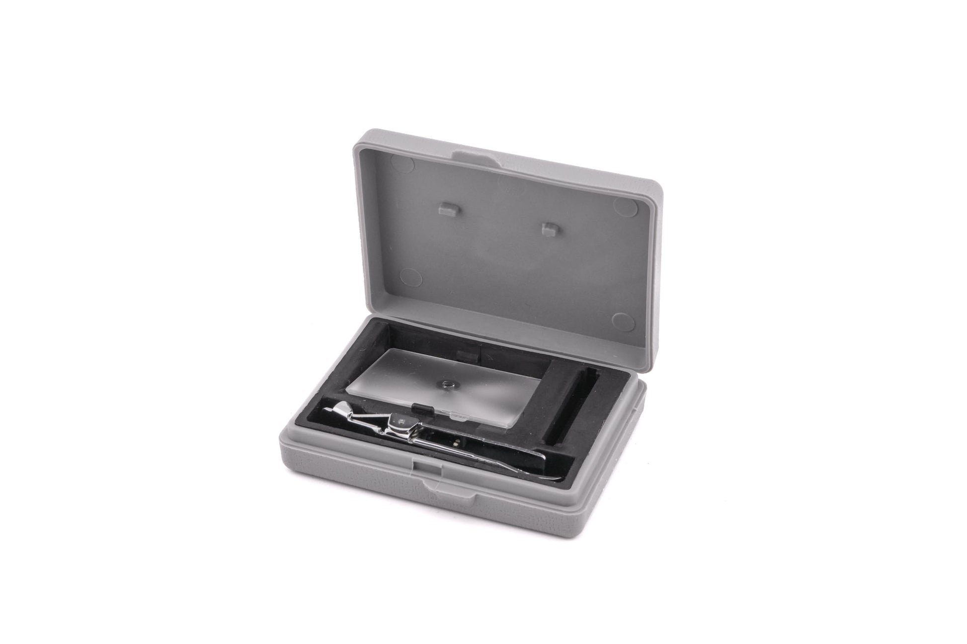 Standard screen with a split prism in the middle and a microprism collar around it made for the Pentax LX 35mm SLR camera introduced by Pentax. Clear body.