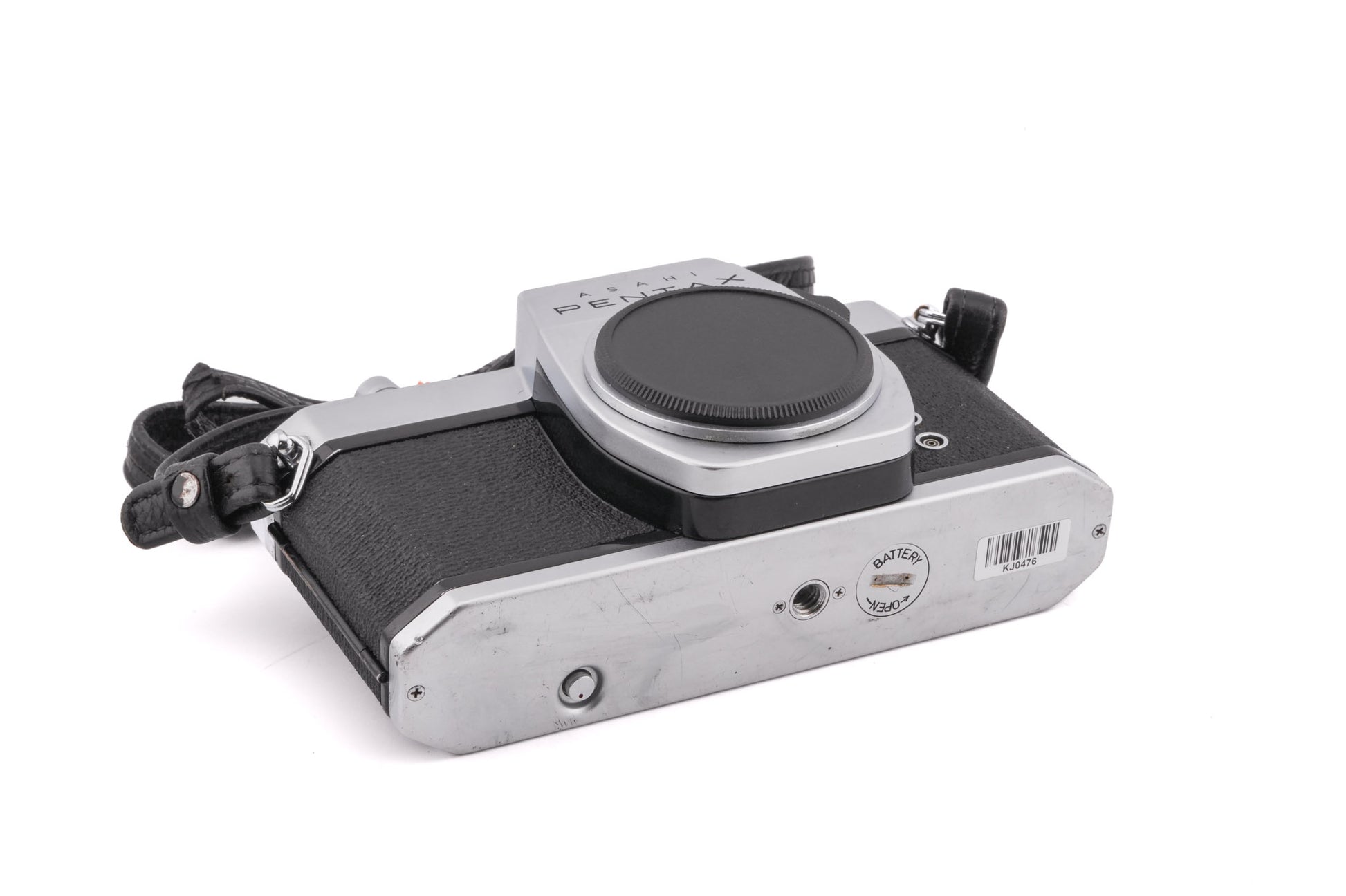 Manual focus M42 mount 35mm SLR released by Pentax in 1971. It is virtually identical to the normal SP, just without a self timer. Despite the shutter speed dial only going up to 1/500s, the camera can use 1/1000s if you rotate the dial to the empty space between 1/500s and bulb. The light meter was made to use a 1.3v mercury battery. Metal body available in silver grey.