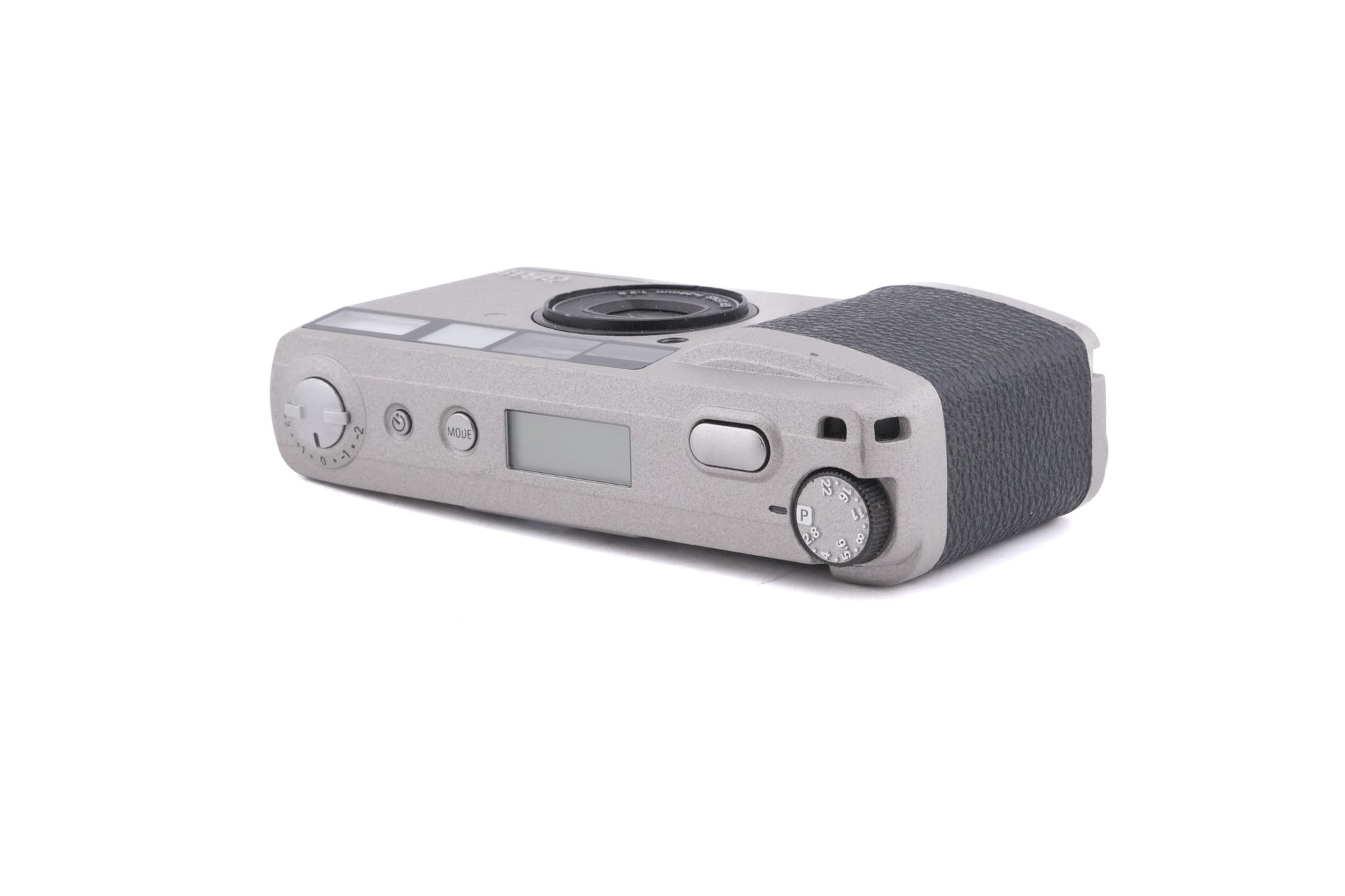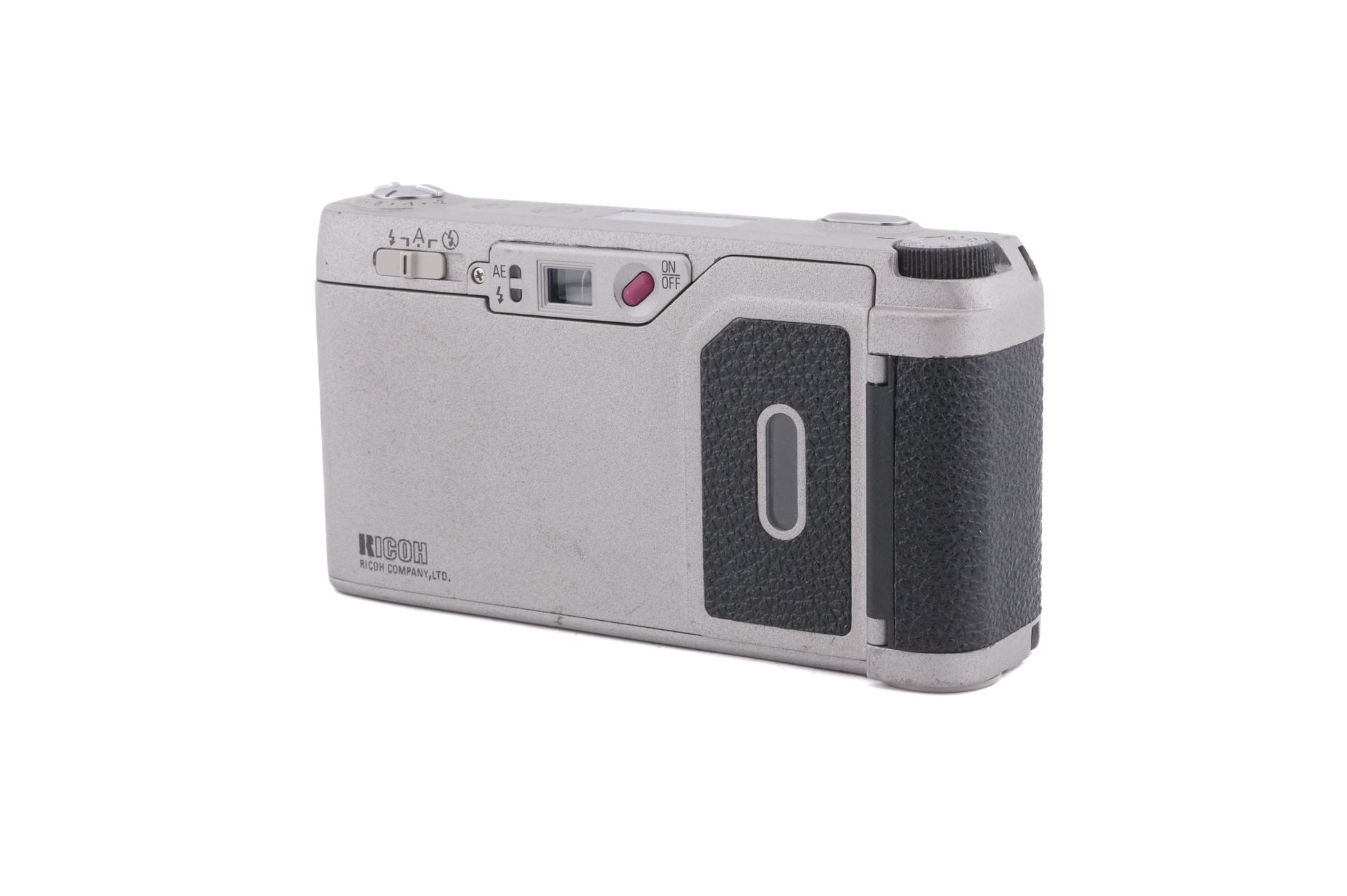 Autofocus 35mm point-and-shoot camera released by Ricoh in 1997. It features an aperture control dial, +/- 2 stops of exposure compensation, and a physical flash on/off switch. The lens coatings were also updated compared to the original GR1. Metal body available in black and silver.