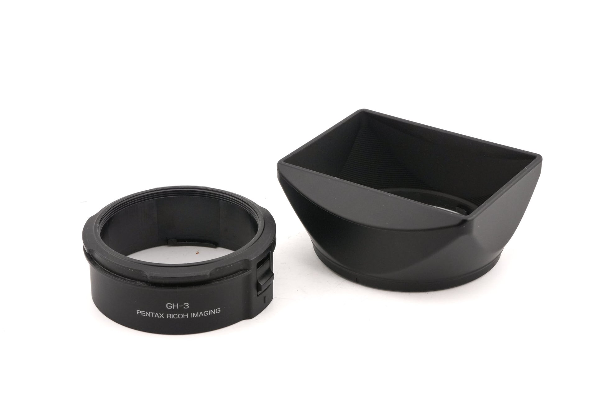 Set of lens hood and adapter made for the GR and GR II introduced by Ricoh. It allows the attachment of a lens hood and other accessories. Plastic body available in black.