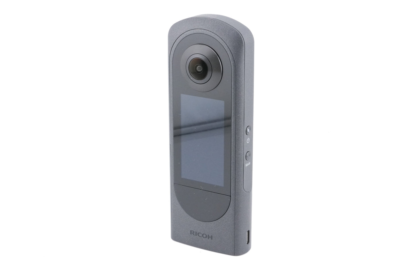 Autofocus 360 camera made by Ricoh in 2022. Plastic body available in black.