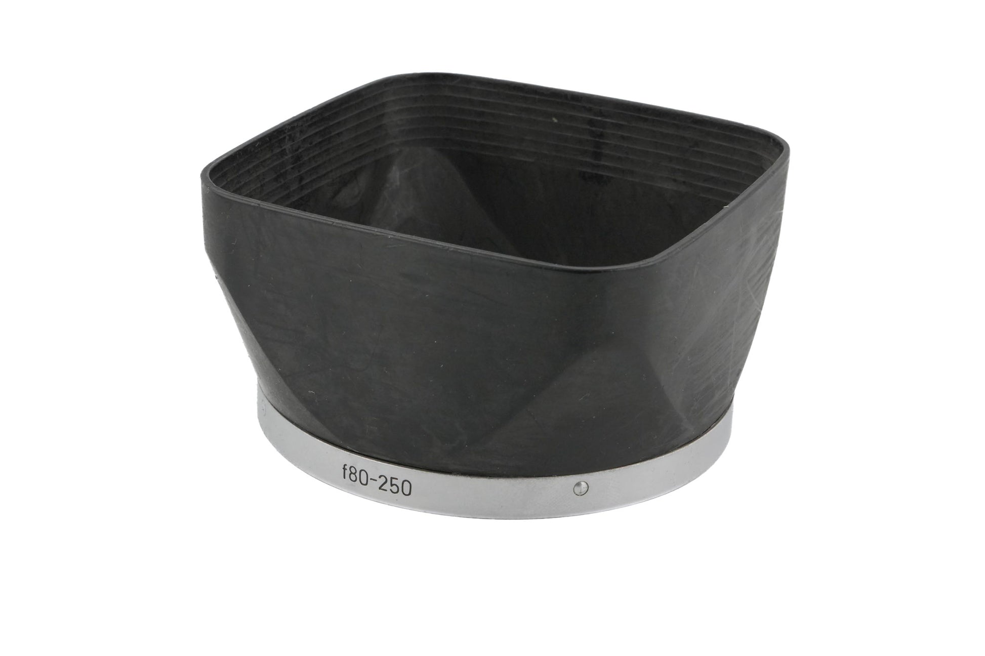 Lens hood made for Rollei SL66 telephoto lenses ranging from 80 - 250mm introduced by Rollei. It attaches via bayonets. Plastic body available in black.