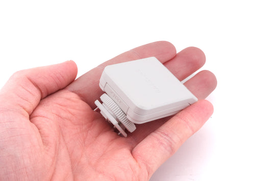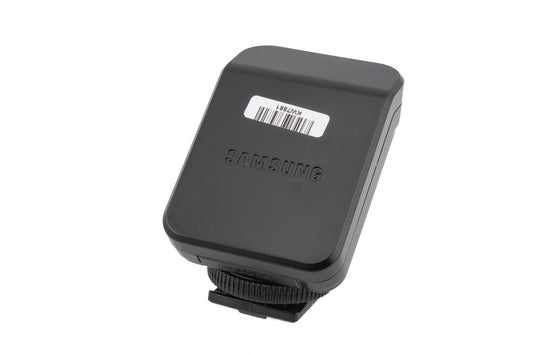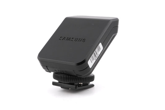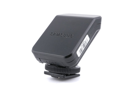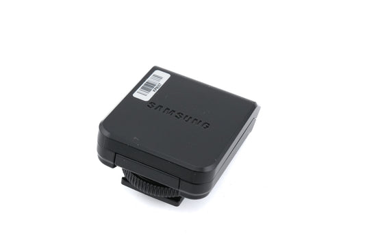 Hotshoe-mounted flash made by Samsung. Plastic body available in black, white, and silver.
