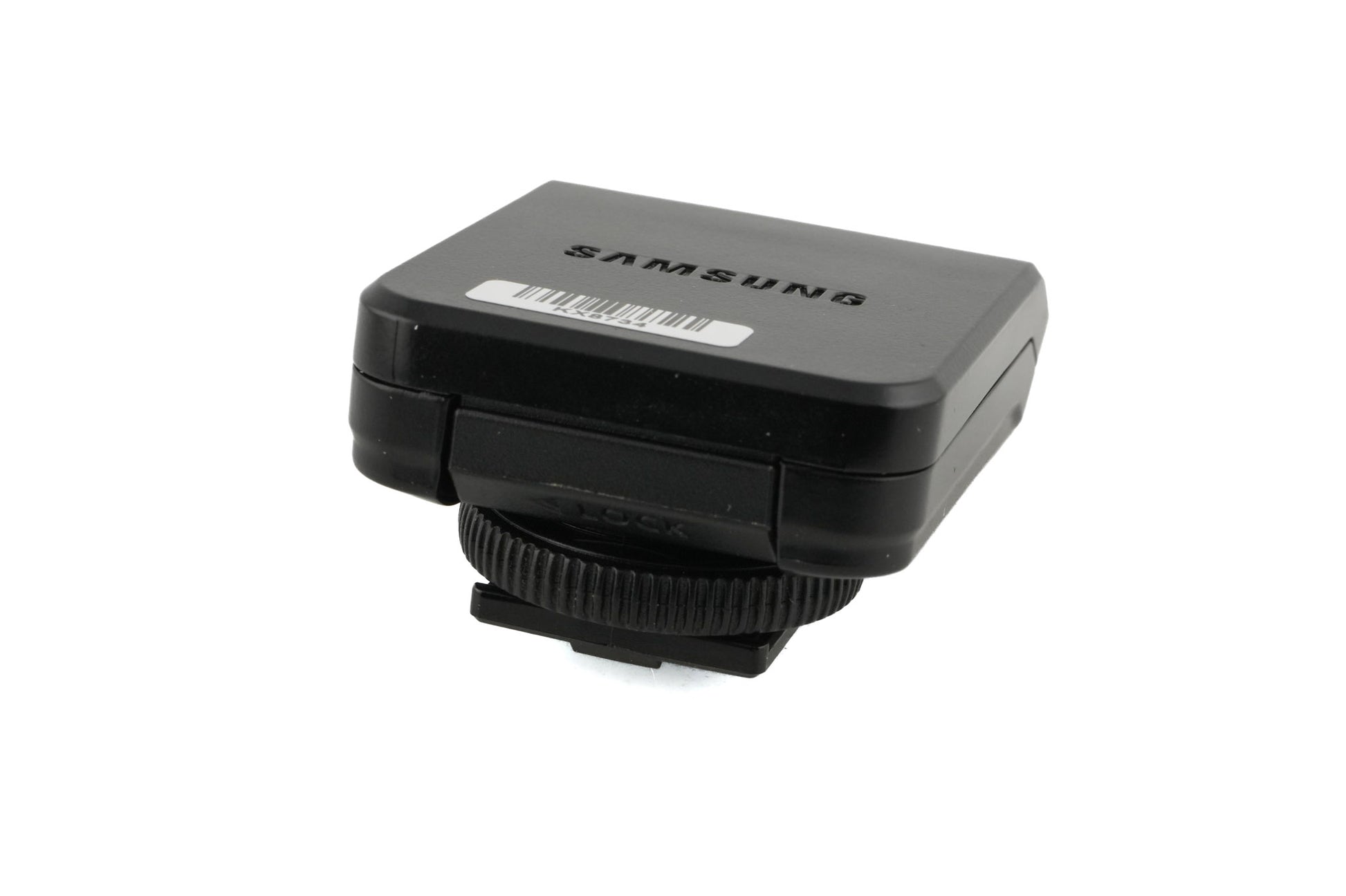 Hotshoe-mounted flash made by Samsung. Plastic body available in black, white, and silver.