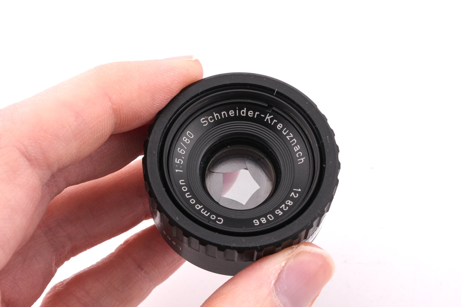 This Schneider-Kreuznach 80mm f5.6 Componon includes: