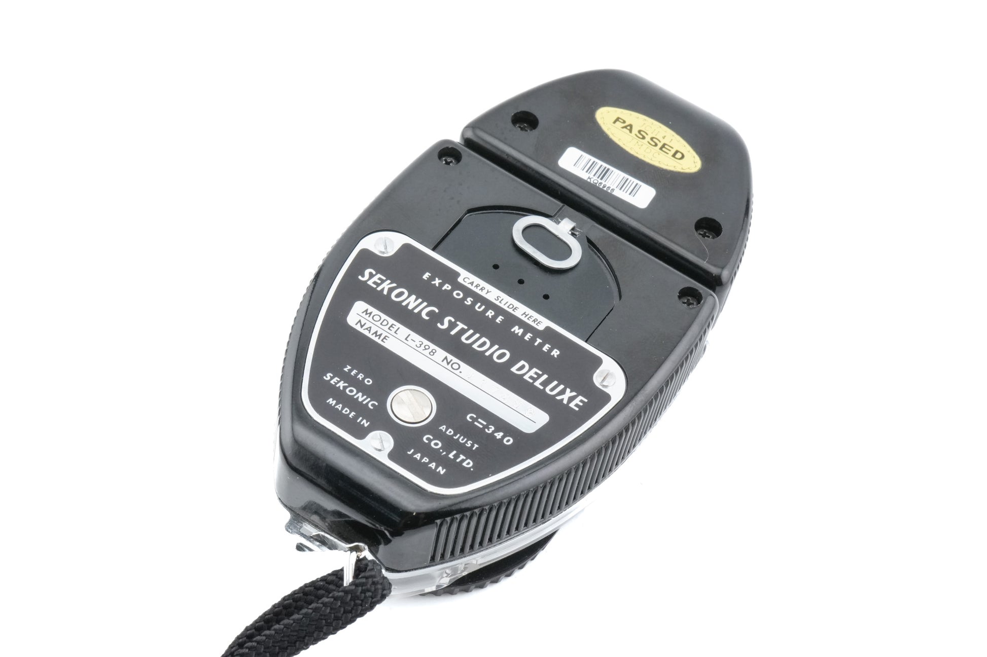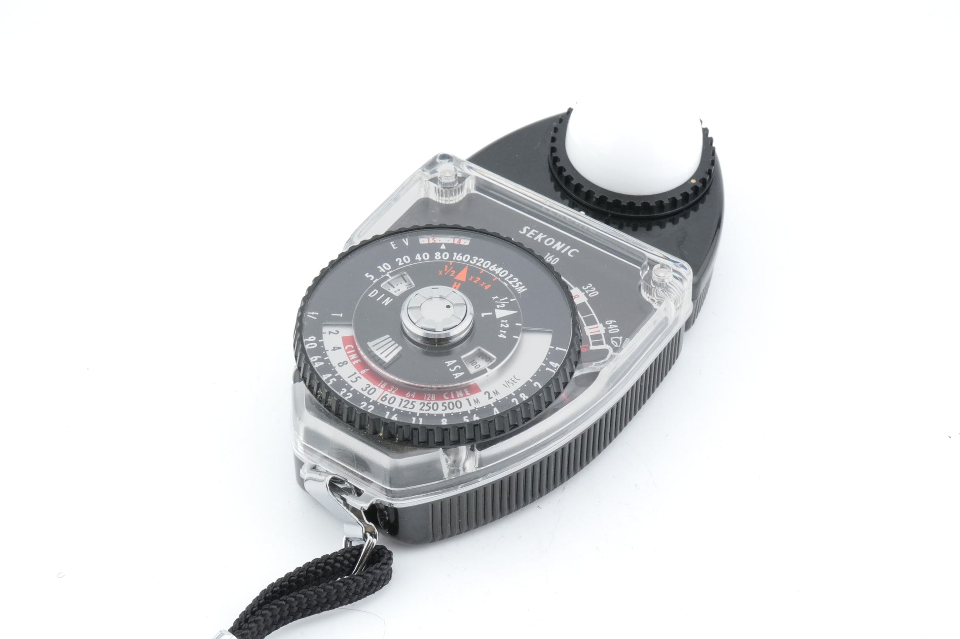 Battery-independent exposure meter for metering incident light introduced in 1976 by Sekonic. Plastic body available in black.