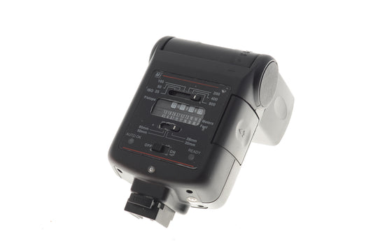 Automatic TTL controlled flash for Minolta cameras with iISO reversed flash shoe. features include, zoom flash head, auto power off and autofocus illumination.