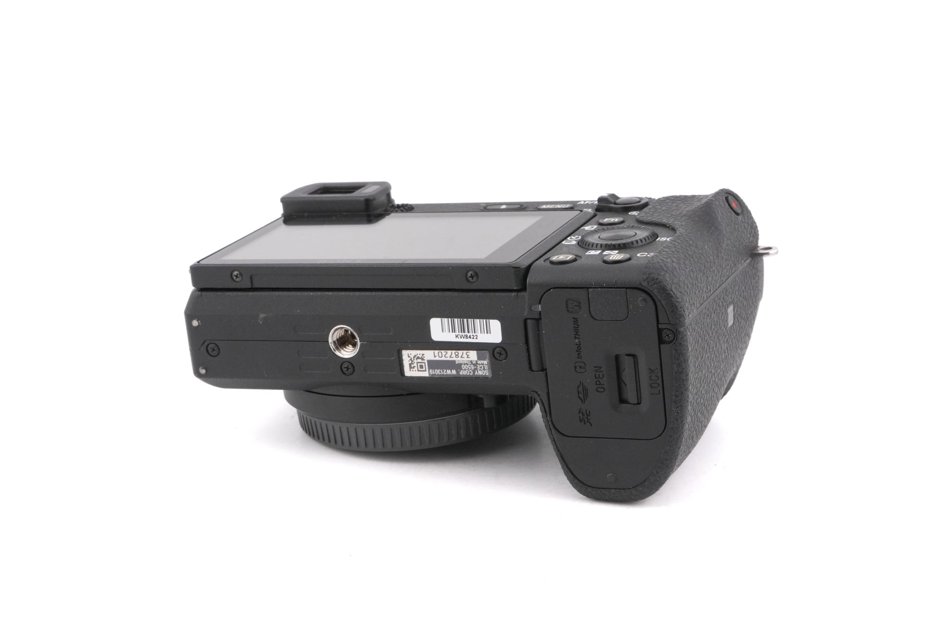 Autofocus E-mount digital mirrorless camera released by Sony in 2016. It has a 3” tilting touch screen, 5-axis in-body image stabilization (SteadyShot), and 4K video recording. Metal body available in black.