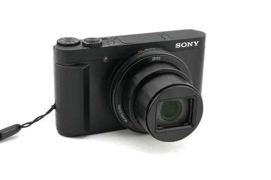 Autofocus digital point-and-shoot camera released by Sony in 2015. It features a 30x optical zoom lens. The lens gives the equivalent field of view to a 24-720mm lens on full frame/35mm. The original price ($430 USD) is the equivalent of around 540 Euros in 2025. This non-V model lacks the GPS functionality found on the HX90V. Metal body available in black.