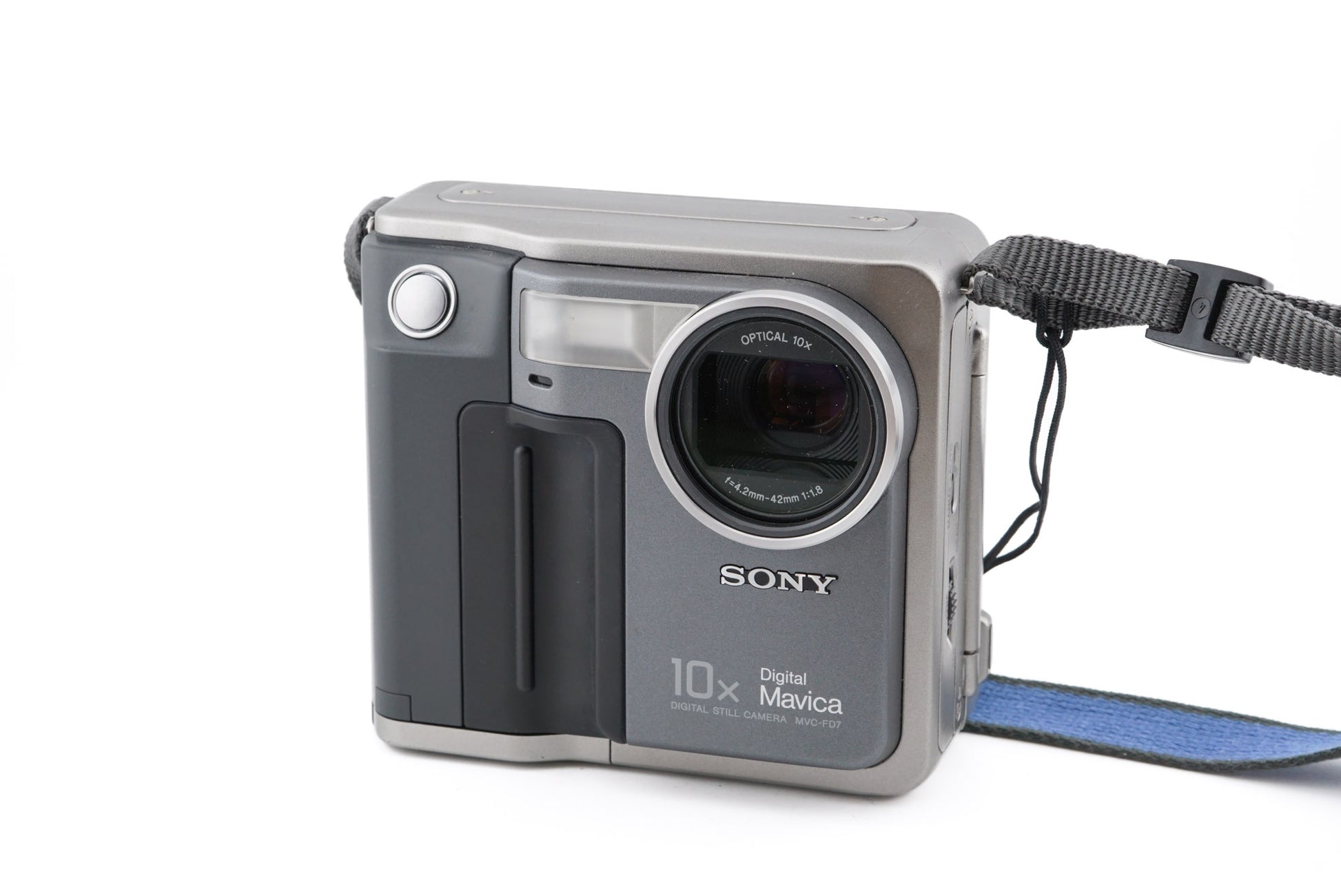 Autofocus digital camera introduced by Sony in 1997. It uses floppy disks as storage. It has a 40 - 400mm equivalent focal lenght, a 2.5" rear LCD, and a built-in flash. Plastic body available in grey.