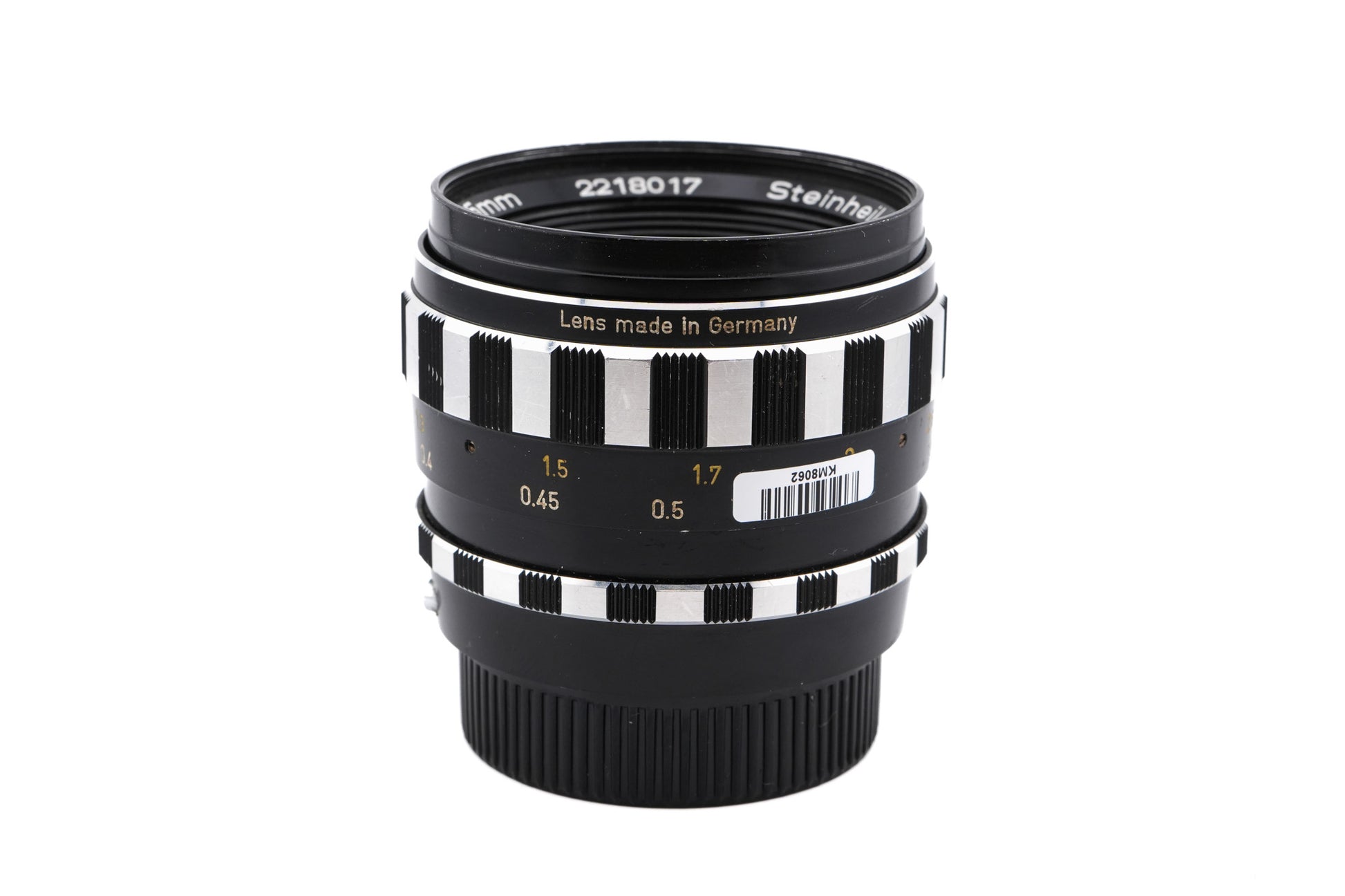 Manual focus normal lens for M42-mount 35mm SLR cameras made by Steinheil. Metal construction available in black with silver accents.