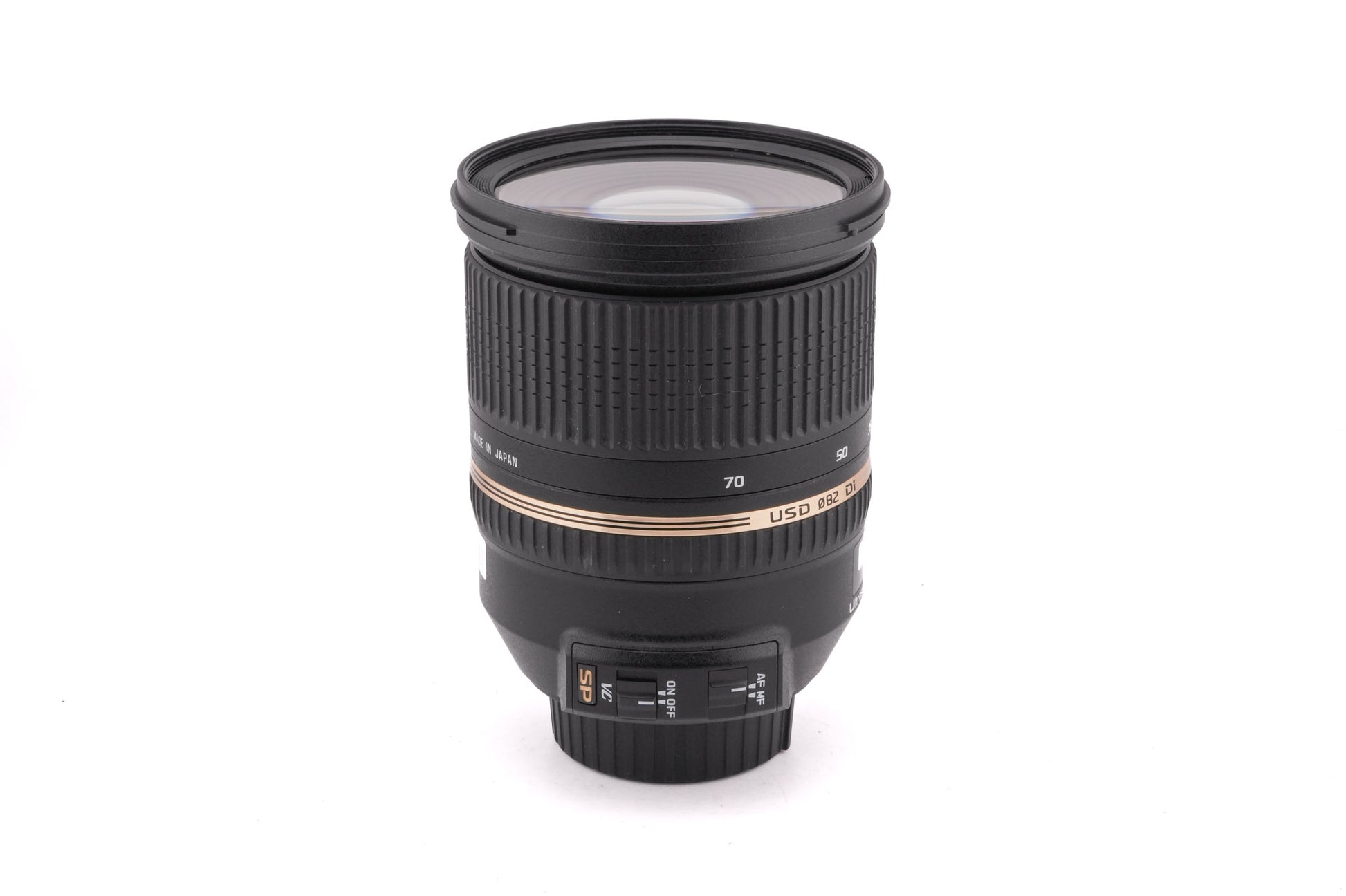 Autofocus normal zoom lens made for F-mount (D)SLRs by Tamron. It has Tamron's Vibration Control (VC) image stabilization and Ultrasonic Silent Drive (USD) focusing motor. It is also Digitally Integrated (DI), meaning it will work with APS-C, full-frame, and even 35mm film cameras. It requires a camera capable of controlling focus and aperture electronically. Plastic/metal body available in black.