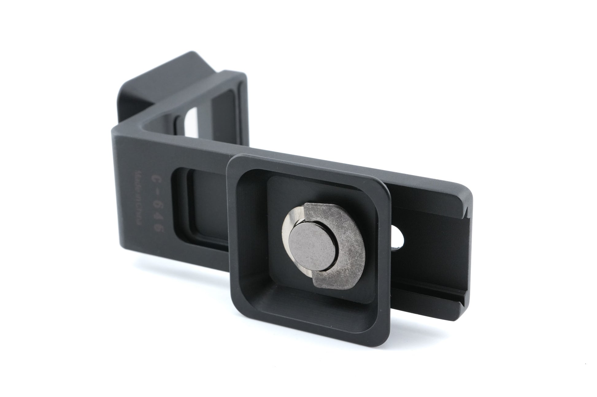L-bracket made by Velbon. It attaches between the camera and a tripod and allows a quick transition between portrait and landscape orientation. Metal body available in black.