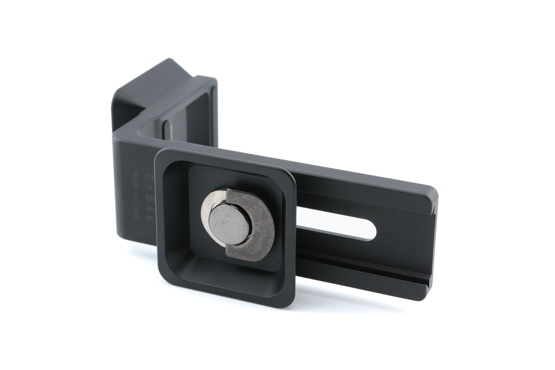 L-bracket made by Velbon. It attaches between the camera and a tripod and allows a quick transition between portrait and landscape orientation. Metal body available in black.
