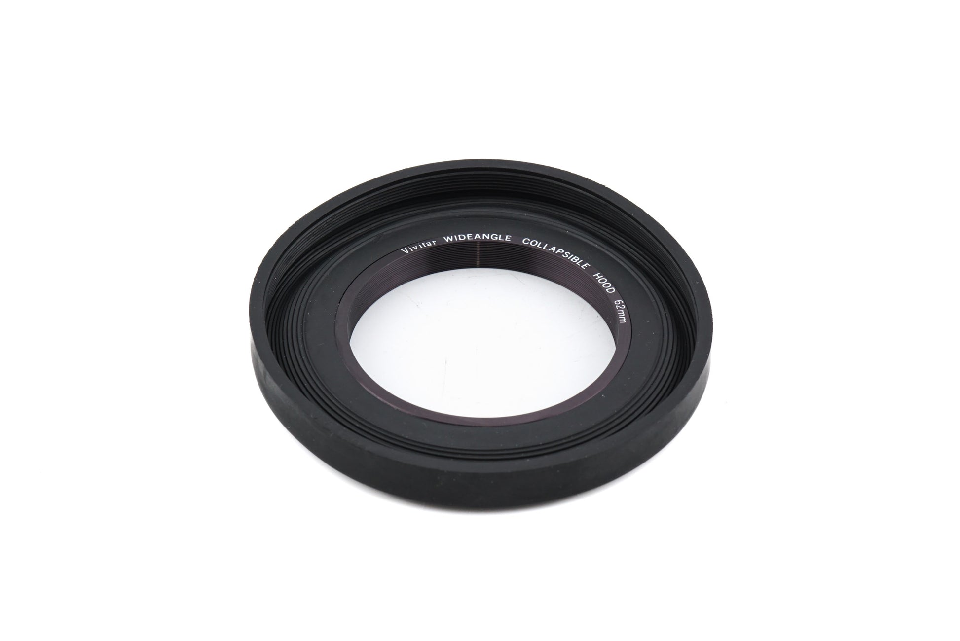 Wide angle lens hood for Vivitar lenses with 62mm filter threads.