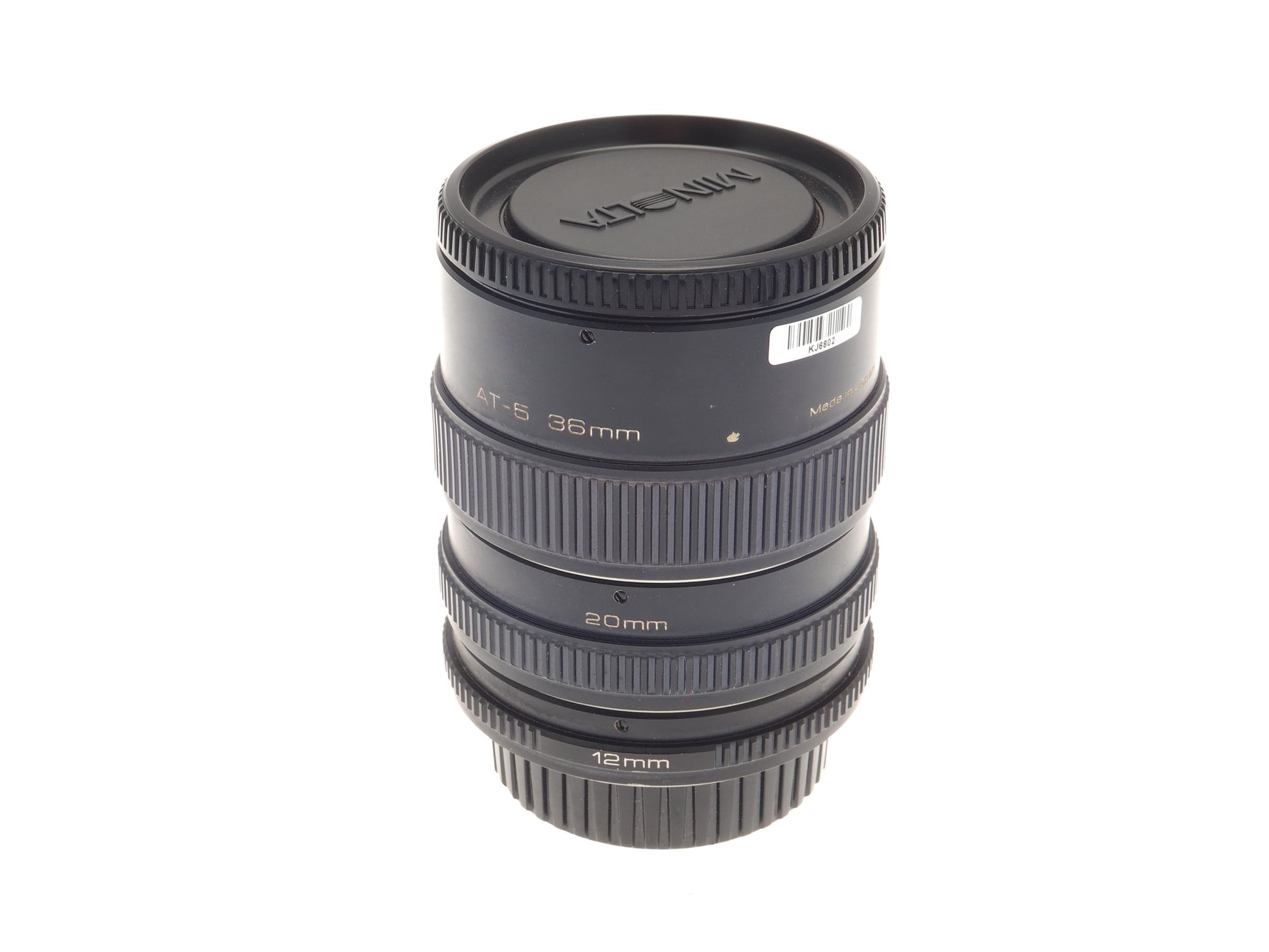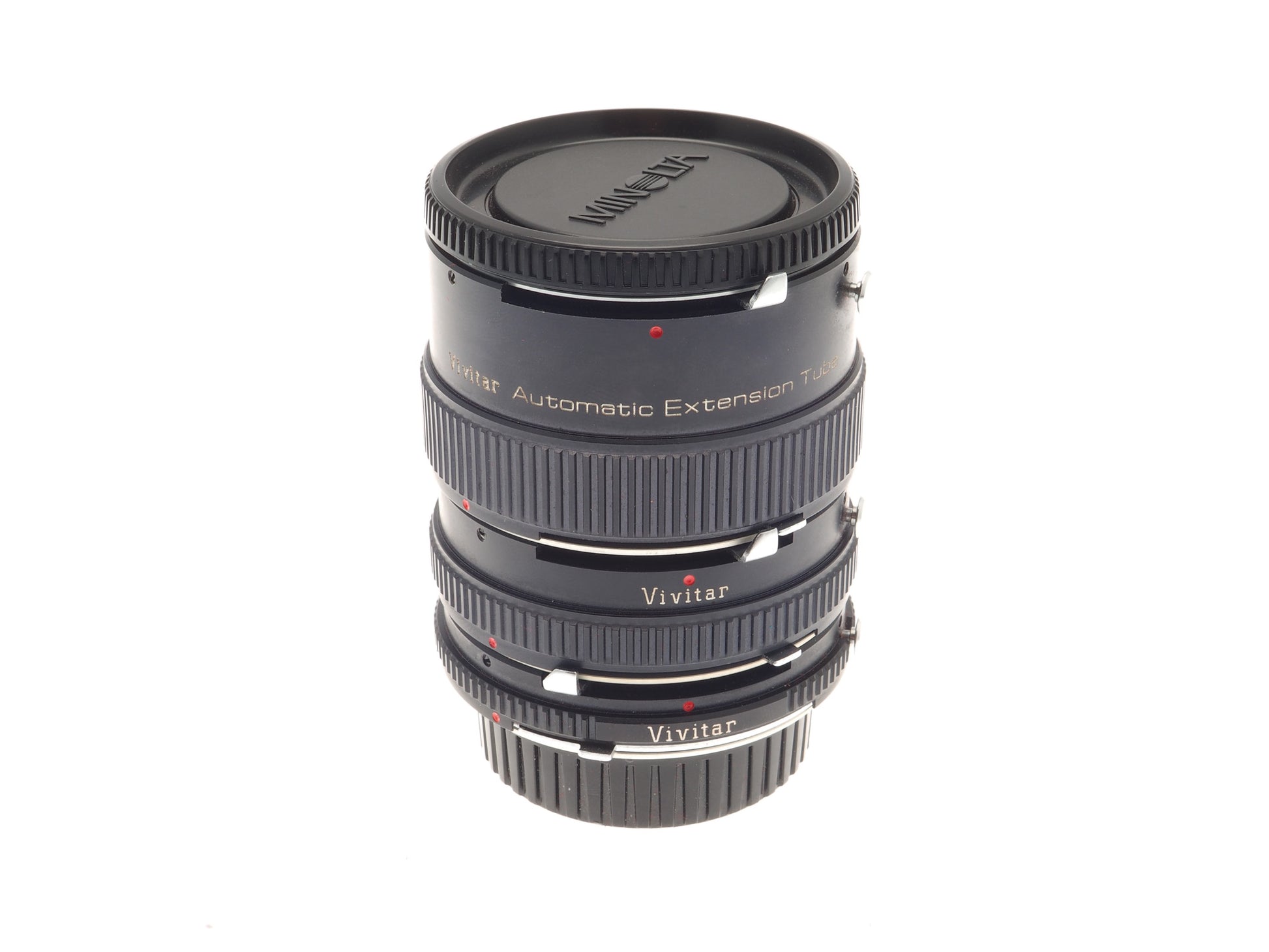 Extension tubes for Minolta MD mount, manufactured by Vivitar. Includes 12mm, 20mm and 36mm tubes.