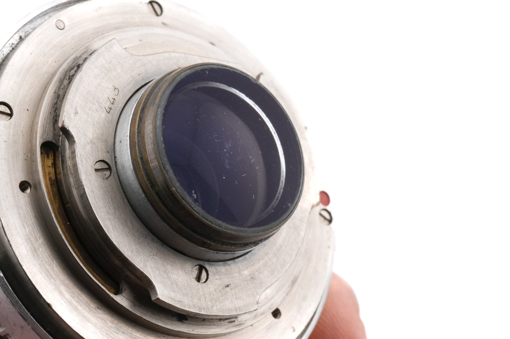 Manual focus short telephoto / portrait prime lens made by Voigtländer for their Vitessa T rangefinder camera using a modified DKL mount. Aperture is controlled in lens, meaning these lenses are not compatible with Bessamatic cameras. Silver metal construction.