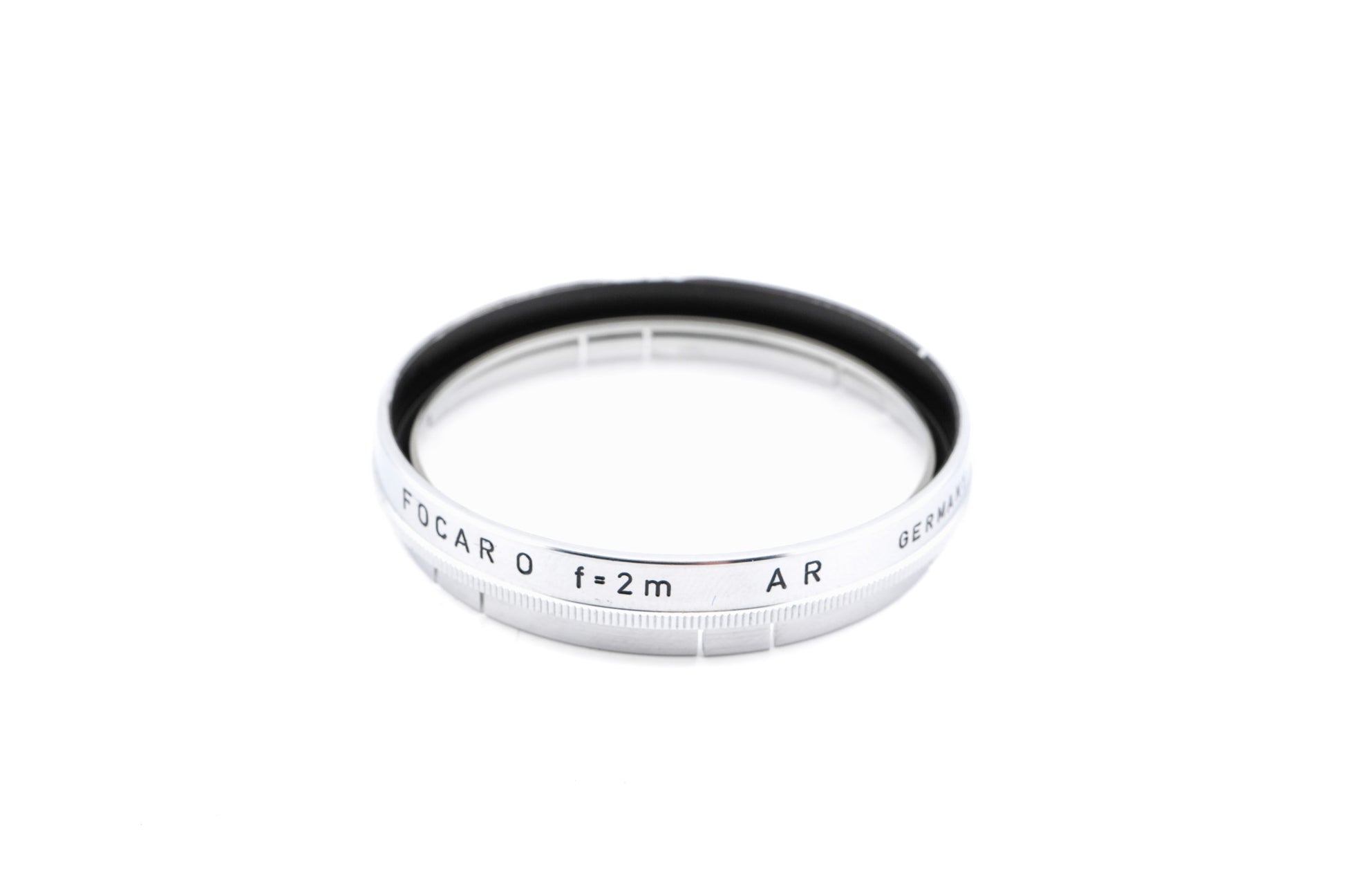 Close-up push-on filter for 100mm f5.5 Telomar made by Voigtländer. Reduces the minimum focusing distance from 2m to 1m. Metal construction available in silver.