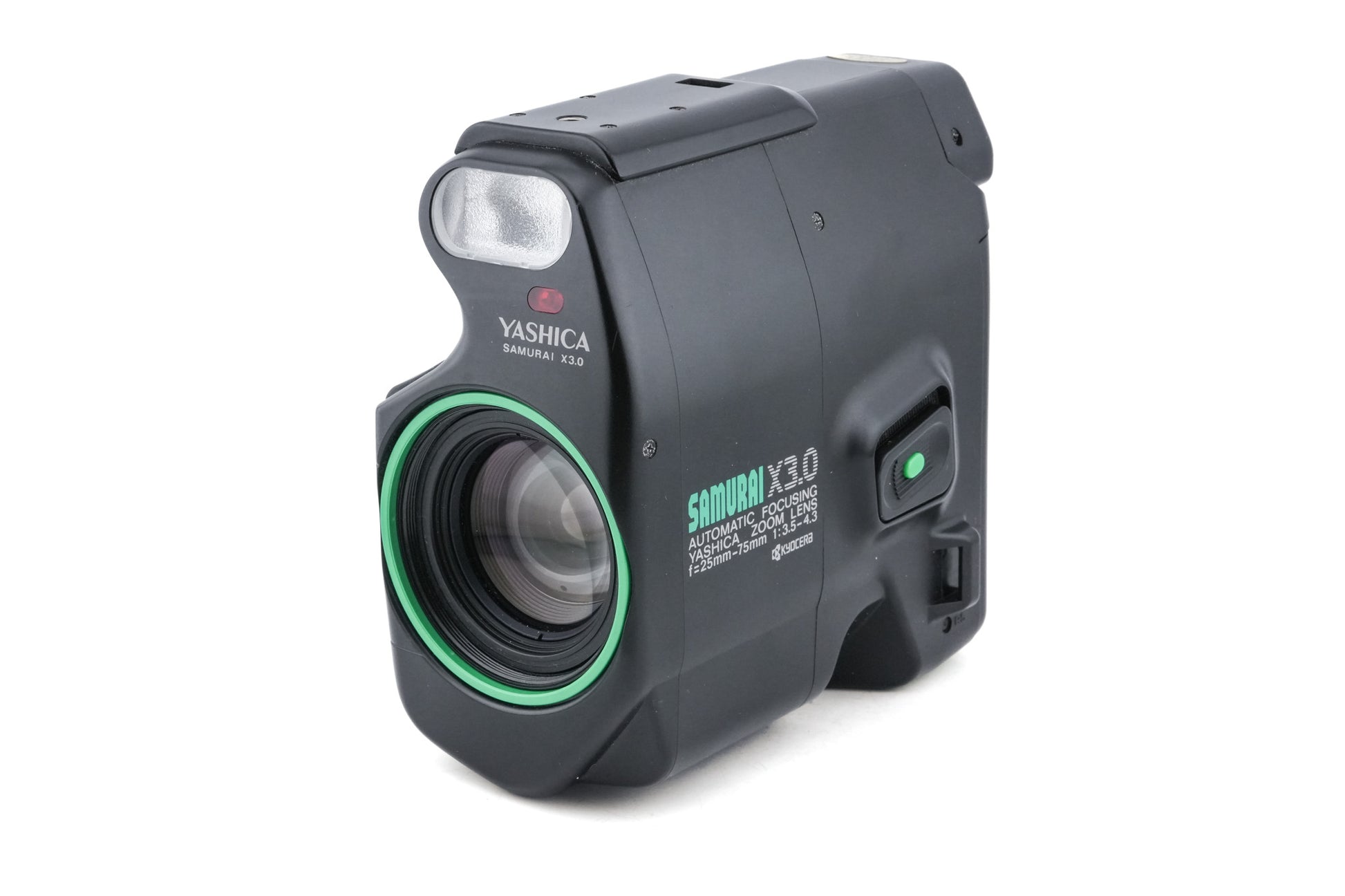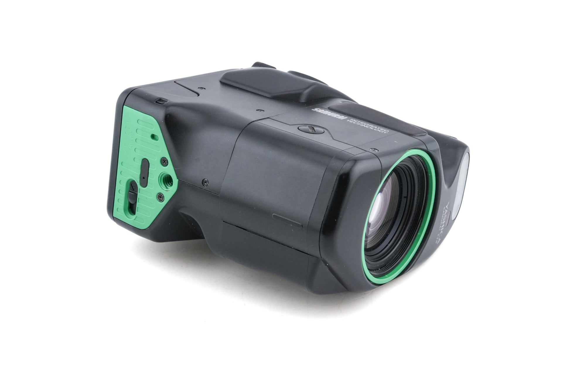 Autofocus 35mm half-frame point-and-shoot camera released by Yashica in 1987. The film runs vertically through the body, making the camera handle similar to camcorders of the era. Plastic body available in black.