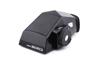 Prism finder with TTL metering made for the Bronica SQ-system by Zenza Bronica. Has a 0.75x magnification. Metal and plastic body available in black.