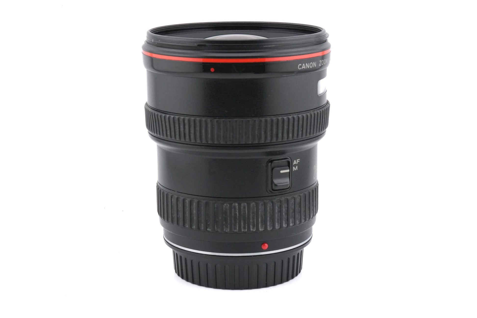 Autofocus wide-angle zoom lens made for EF mount SLRs by Canon starting in 1989. It's part of their L series of professional lenses. Metal and plastic body available in black.
