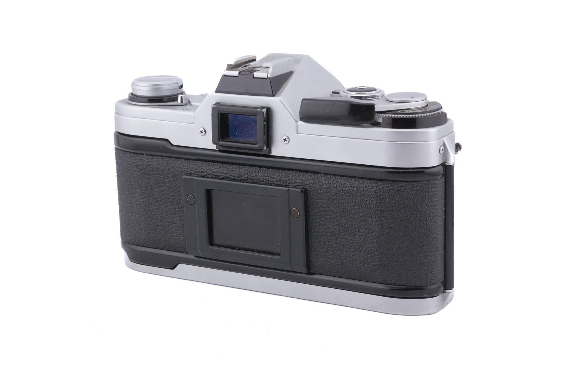 Manual focus FD-mount 35mm SLR released by Canon in 1977. This A-series body only has manual exposure and is lacking the shutter-priority autoexposure found in the AE-1. The camera was manufactured purely for export. Metal body available in silver.