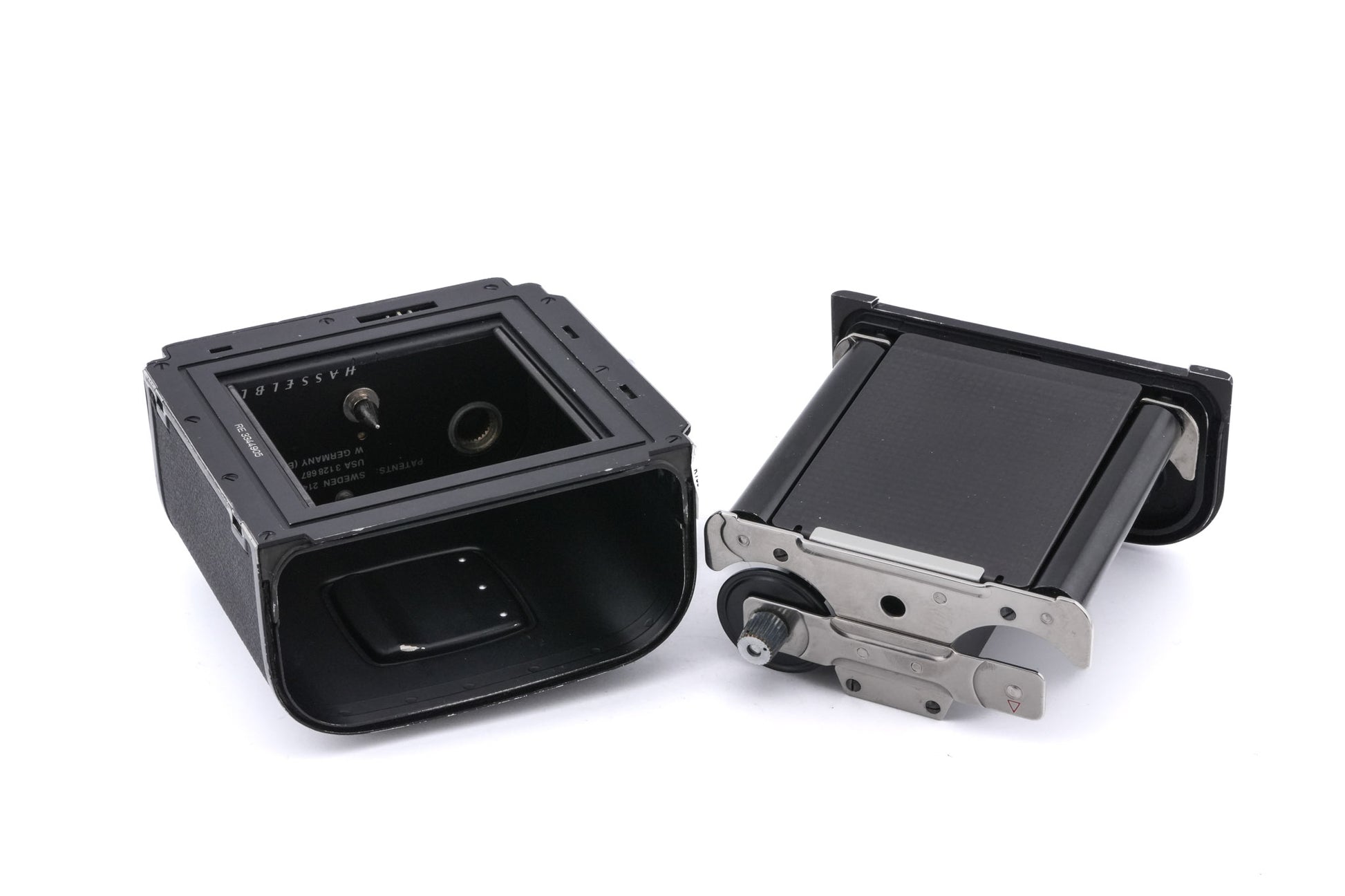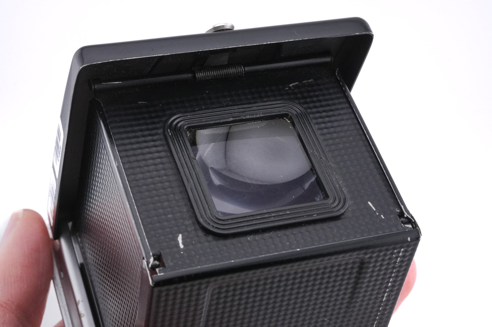 Waist-level viewfinder made for V series 120 SLRs by Hasselblad. It has a pop-up fine focus magnifying loupe and 4 sides that fold manually. Metal body available in black.