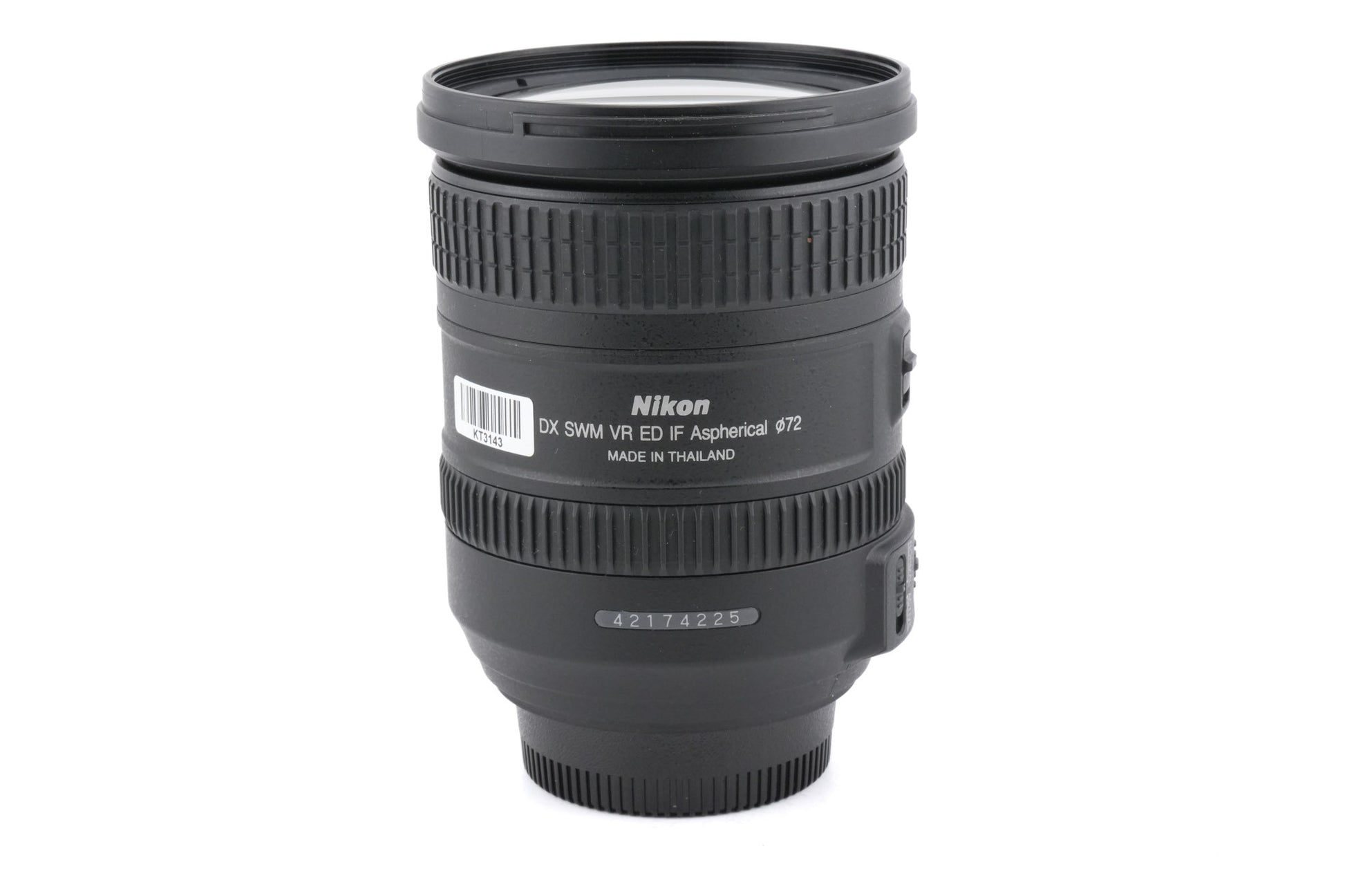 Autofocus zoom lens made for DX-mount digital SLRs by Nikon. It is designed for APS-C-sized sensors and gives the equivalent field of view to a 27-300mm lens on full frame/35mm. The lens also features image stabilization (VR). Plastic and metal body available in black.