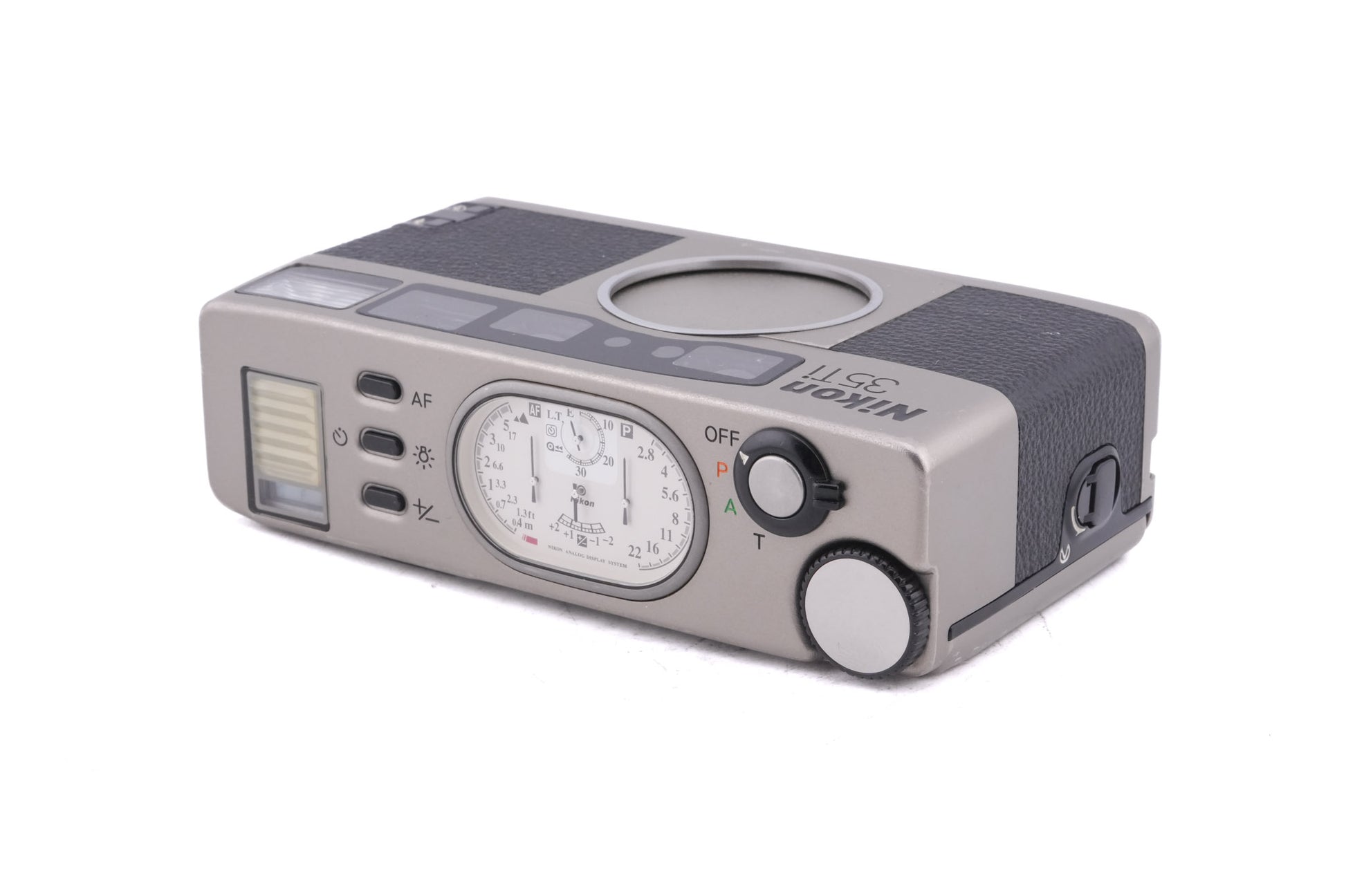 Autofocus 35mm point-and-shoot camera released by Nikon in 1993. It has analog dials on the top plate that resemble a watch face. It has programmed auto exposure as well as aperture priority and manual modes. Titanium body available champagne.