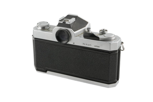 Manual focus F-mount 35mm SLR camera released by Nikon in 1975. This was the final Nikkormat camera to use Nikon's bunny ear metering prongs. It can only meter with lenses that have the prongs. Metal body available in black & silver.