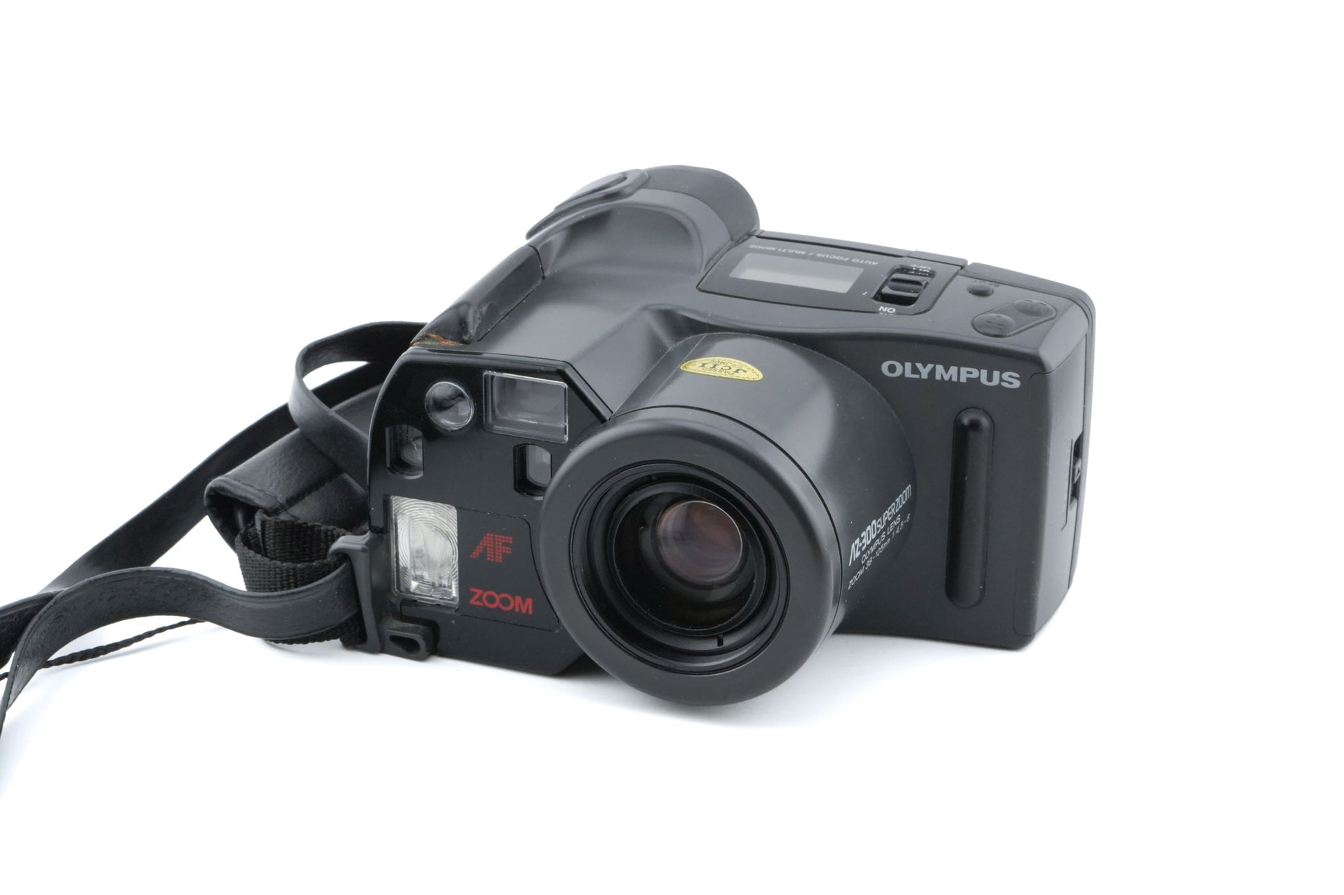 Autofocus 35mm compact point-and-shoot camera introduced by Olympus in 1988. It won the European Camera of the Year prize and was a big part in the development of the early bridge-style cameras. It was the first camera to have a viewfinder that automatically corrected the view in parallel to the zooming lens. It features passive AF, exposure compensation of +/- 1.5, and optional spot metering. Plastic body available in grey/black.