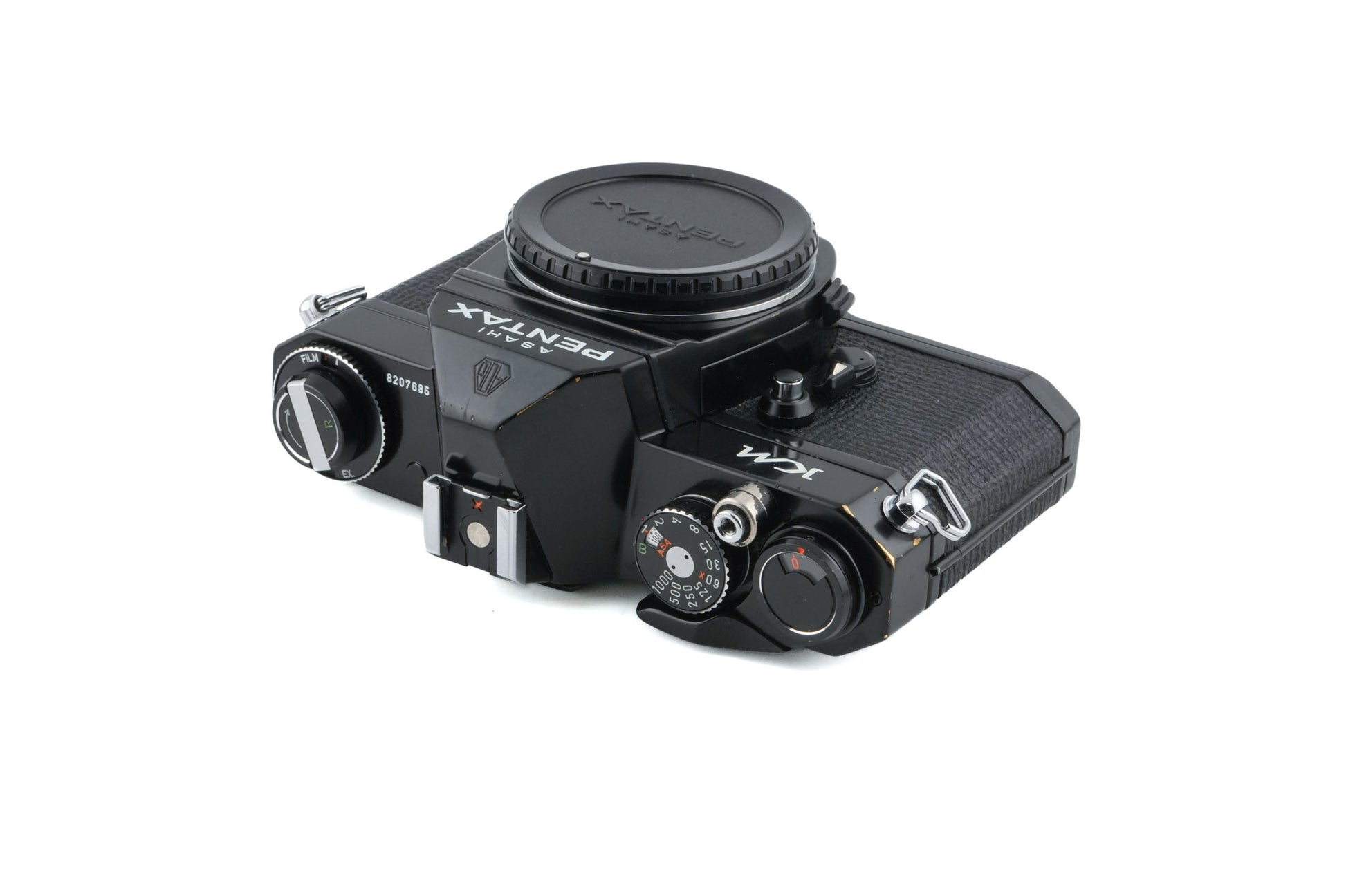 Manual focus K mount 35mm SLR camera released by Pentax in 1975. This camera sat between the K1000 and KX in Pentax's lineup, with an aperture stop-down button and a self-timer but no aperture preview window. Metal body available in black and silver.