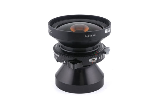 Wie angle lens made for large format cameras by Sinar. It gives the equivalent field of view to a 30mm lens on full frame/35mm (when mounted to 4x5). Metal body available in black.