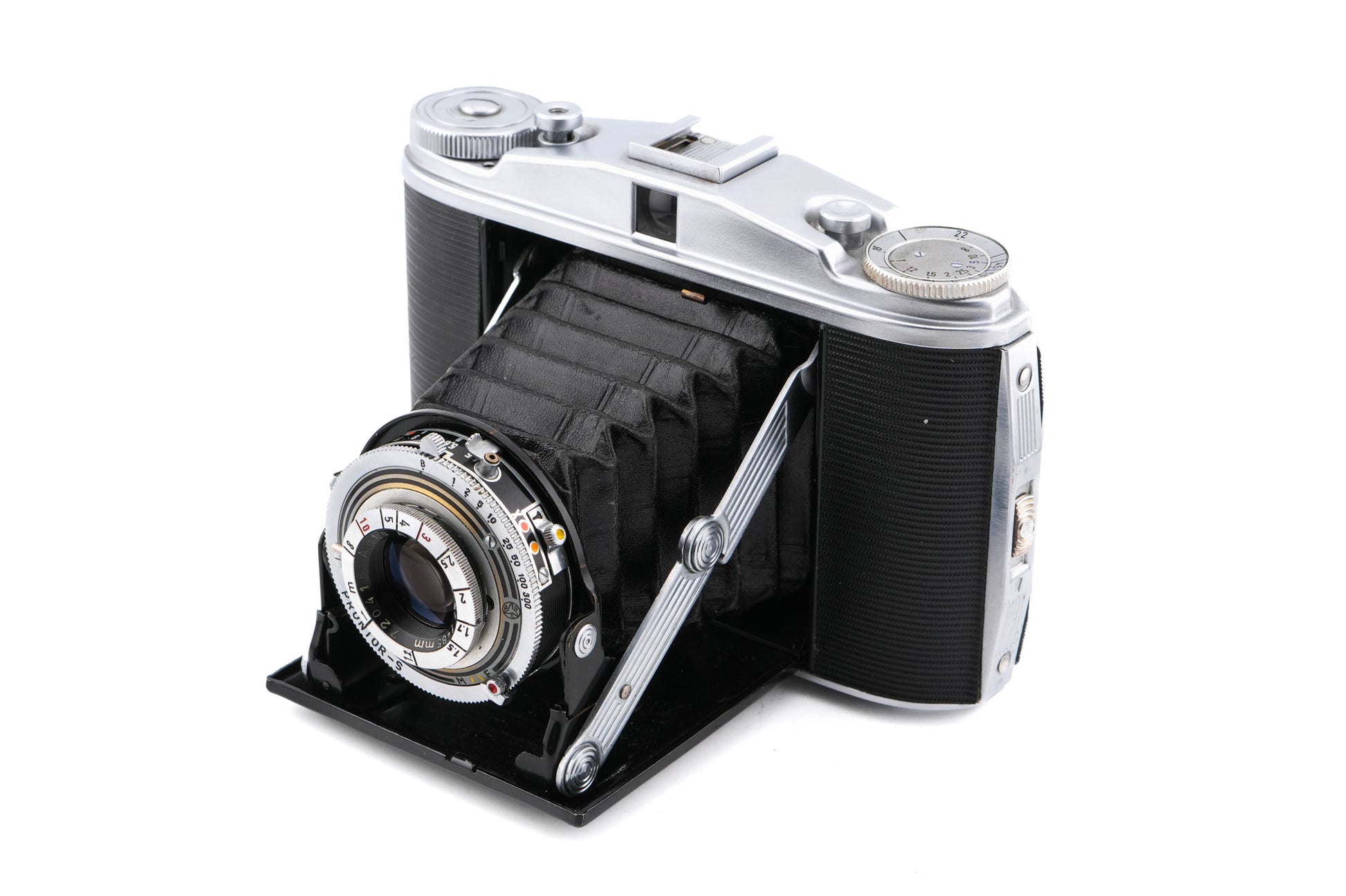 Manual focus 120 film folding camera produced by Agfa between 1950-1960. Unlike the Isolette I and all the preceding models, the film advance knob is on the right. The camera still has a swing-out spool holder on the supply side of the film chamber. Metal body available in black.