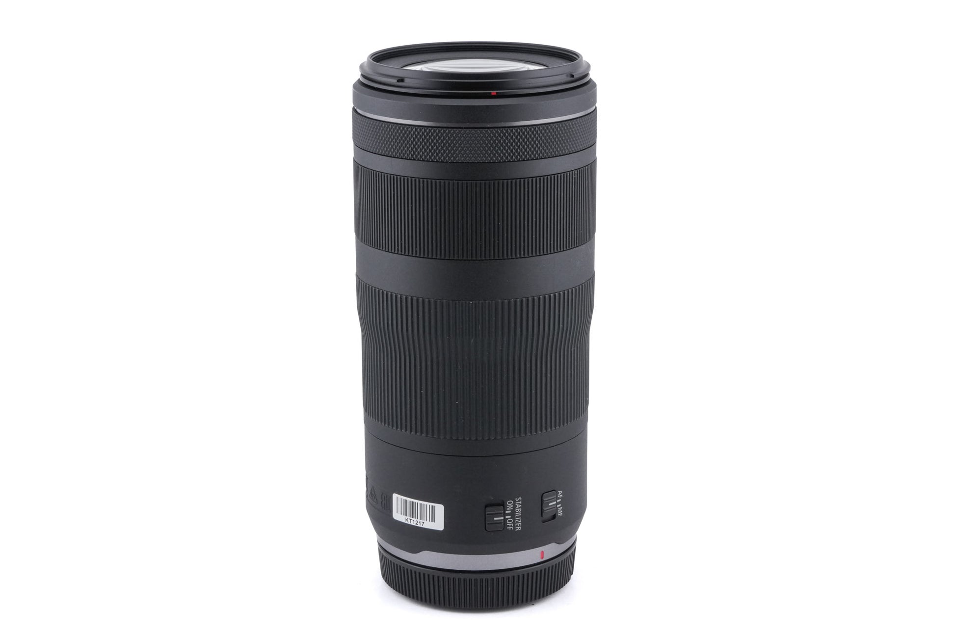 Autofocus telephoto zoom lens made for RF-mount digital mirrorless cameras released by Canon in 2021. It has image stabilization (IS) and uses an ultrasonic focusing motor (USM) for autofocus. It has a control ring that can be customized. Metal and plastic body available in black.