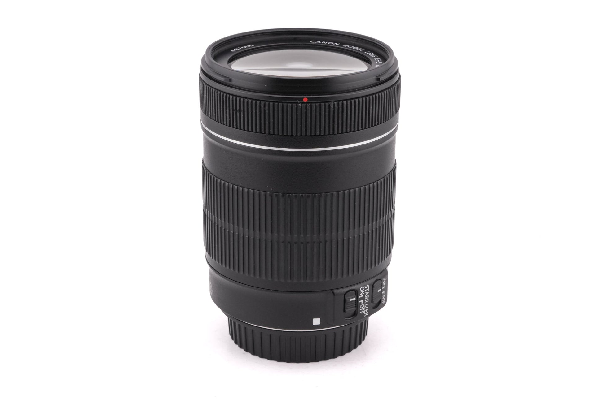 Autofocus zoom lens made for EF-S mount digital SLR cameras by Canon starting in 2009. It is designed for APS-C-sized sensors and gives the equivalent field of view to a 27-202.5mm lens on full frame/35mm. It has built-in image stabilization (IS). Plastic body available in black.