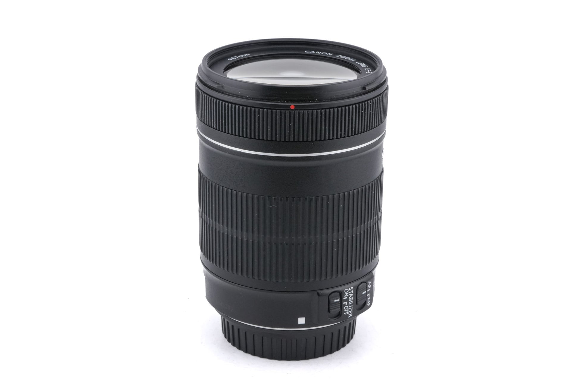 Autofocus zoom lens made for EF-S mount digital SLR cameras by Canon starting in 2009. It is designed for APS-C-sized sensors and gives the equivalent field of view to a 27-202.5mm lens on full frame/35mm. It has built-in image stabilization (IS). Plastic body available in black.