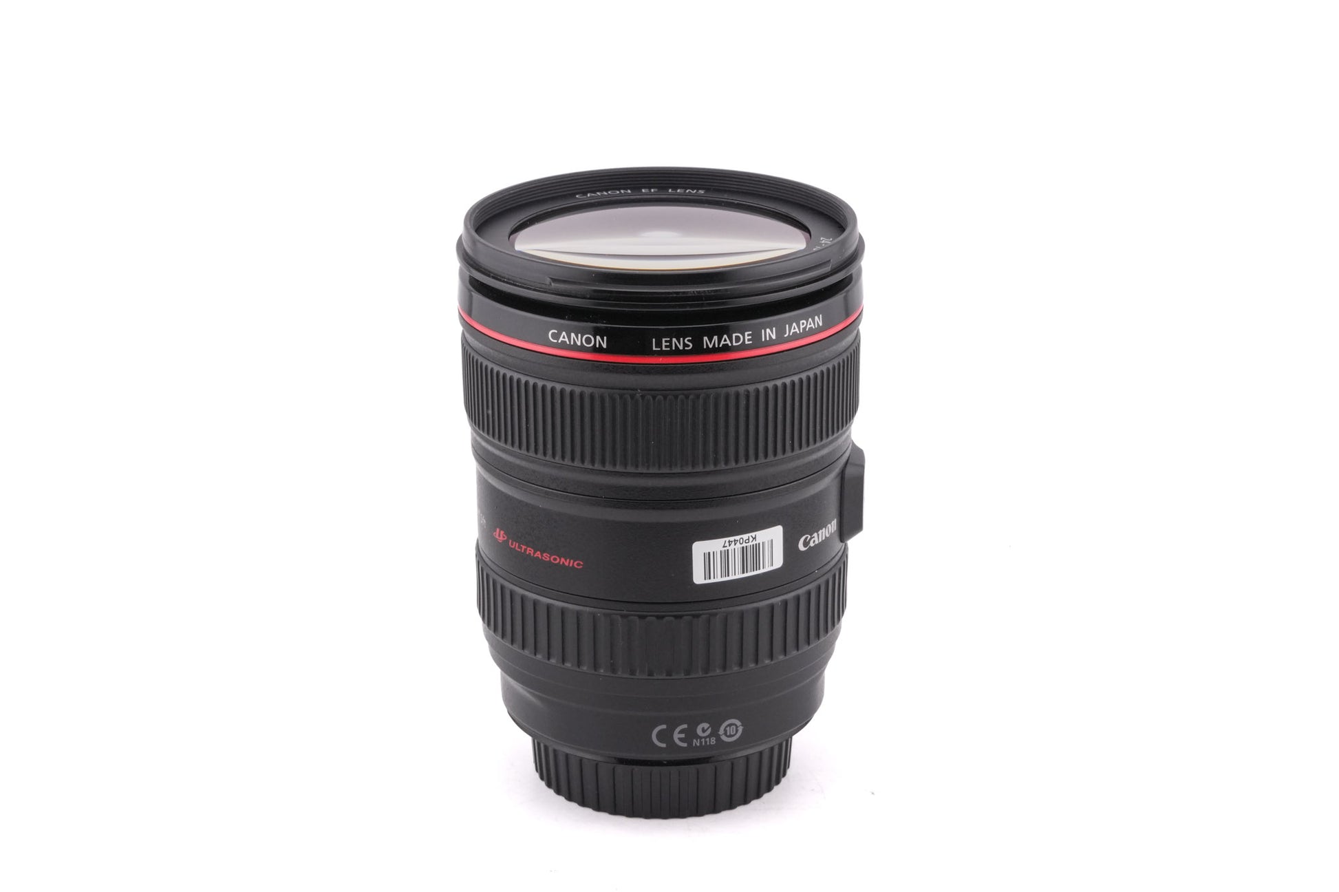 Autofocus standard zoom lens made for EF-mount SLR cameras by Canon starting in 2005. It's part of their L series of professional lenses and has a weather-sealing gasket. It has built-in image stabilization (IS) and uses an ultrasonic motor (USM) for autofocus. Plastic and metal body available in black.